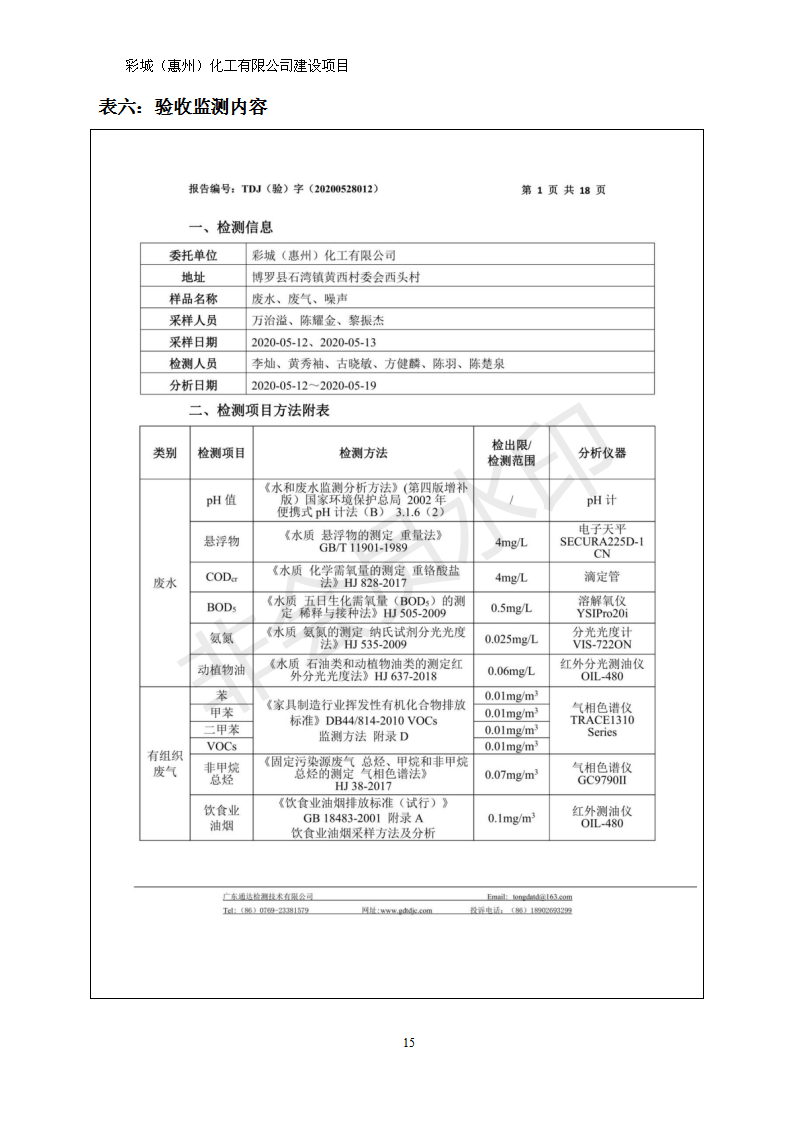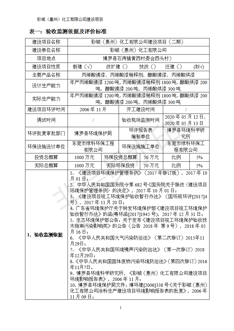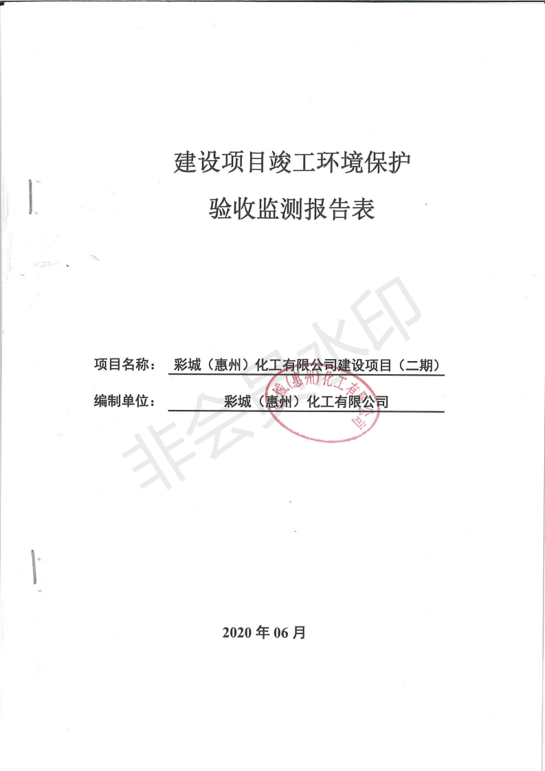 经验收现形成彩城(惠州)化工有限公司建设项目竣工环境保护验收报告”现公开征求意见20个工作日,如有意见请反馈。 联系人:李聪,联系电话:18814145807,公示日期:2020年6月18日