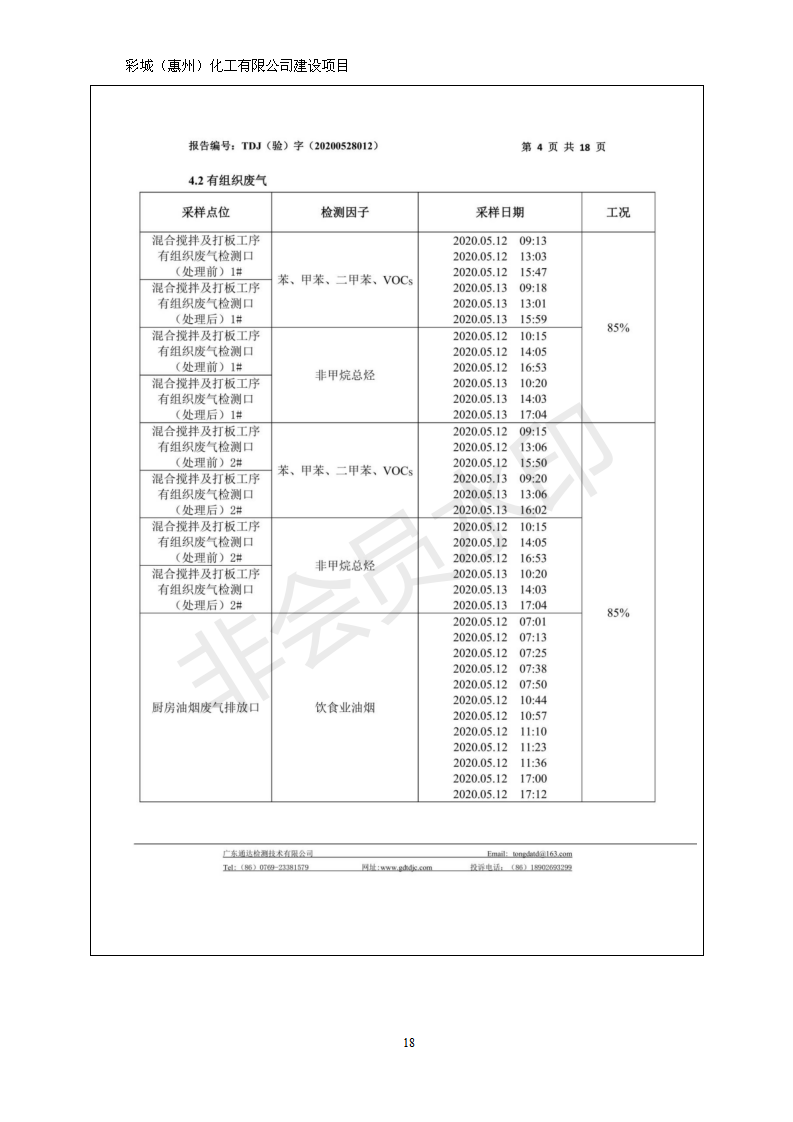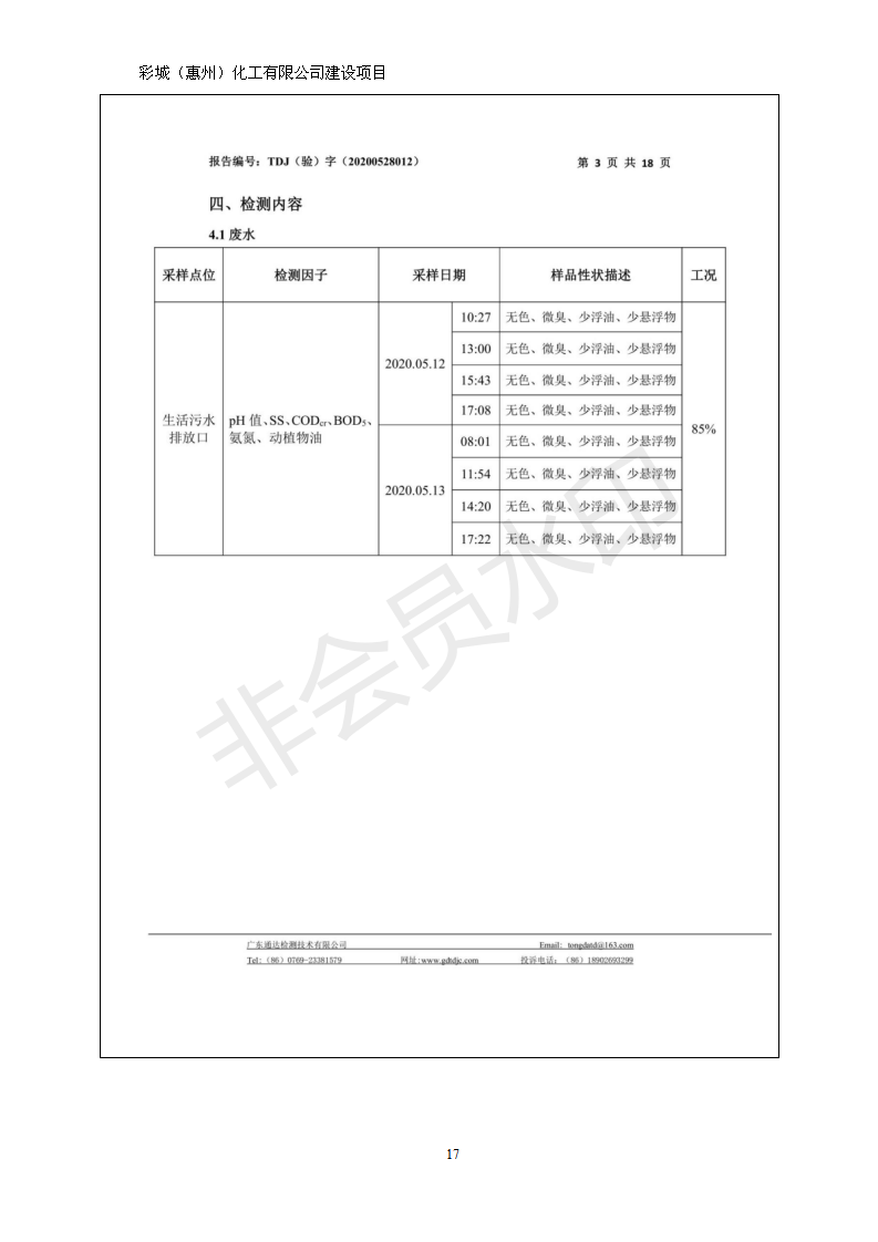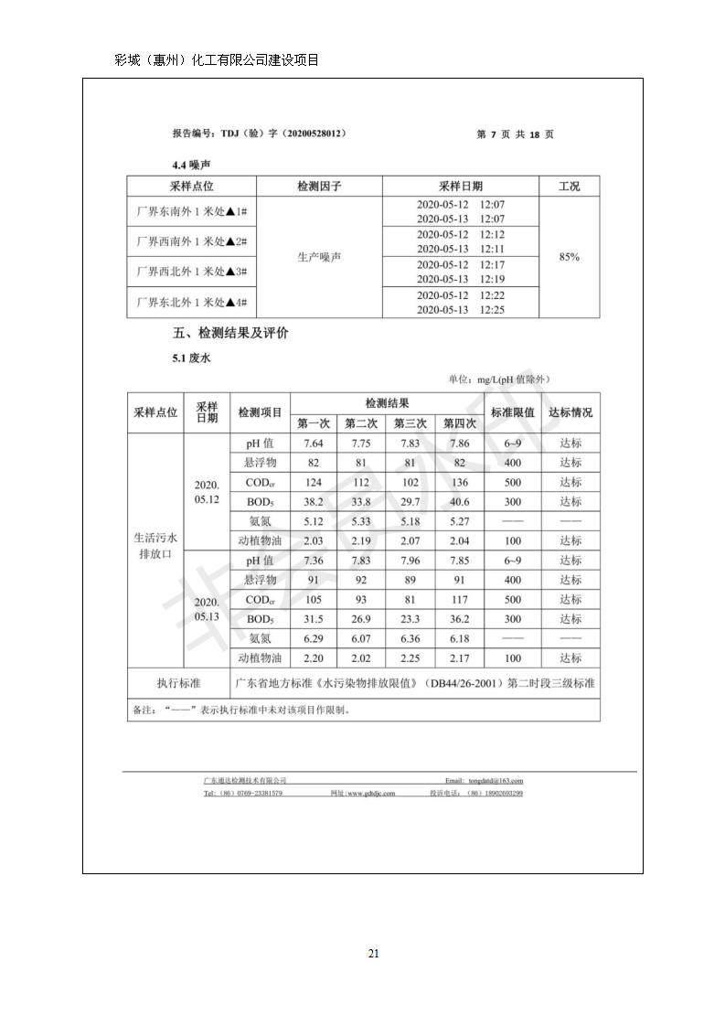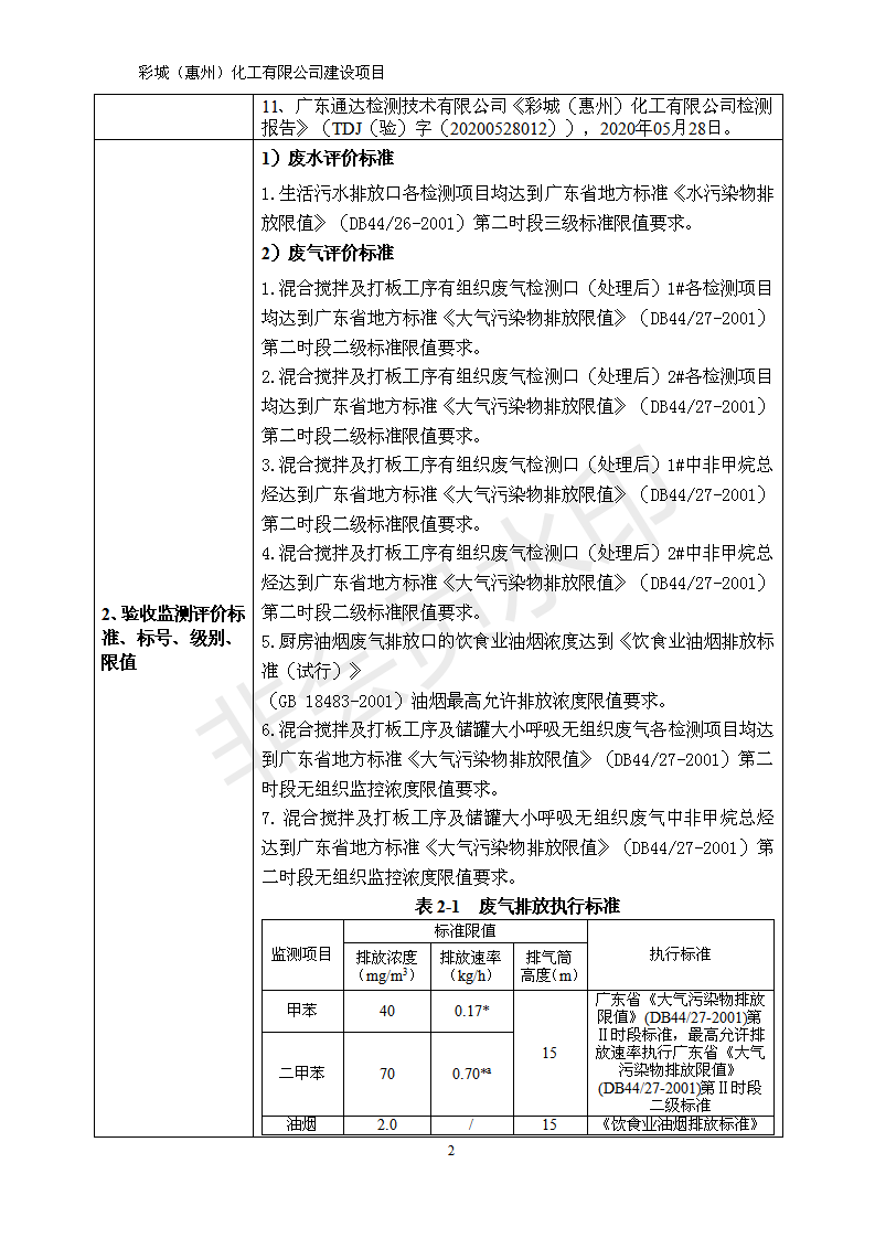 经验收现形成彩城(惠州)化工有限公司建设项目竣工环境保护验收报告”现公开征求意见20个工作日,如有意见请反馈。 联系人:李聪,联系电话:18814145807,公示日期:2020年6月18日