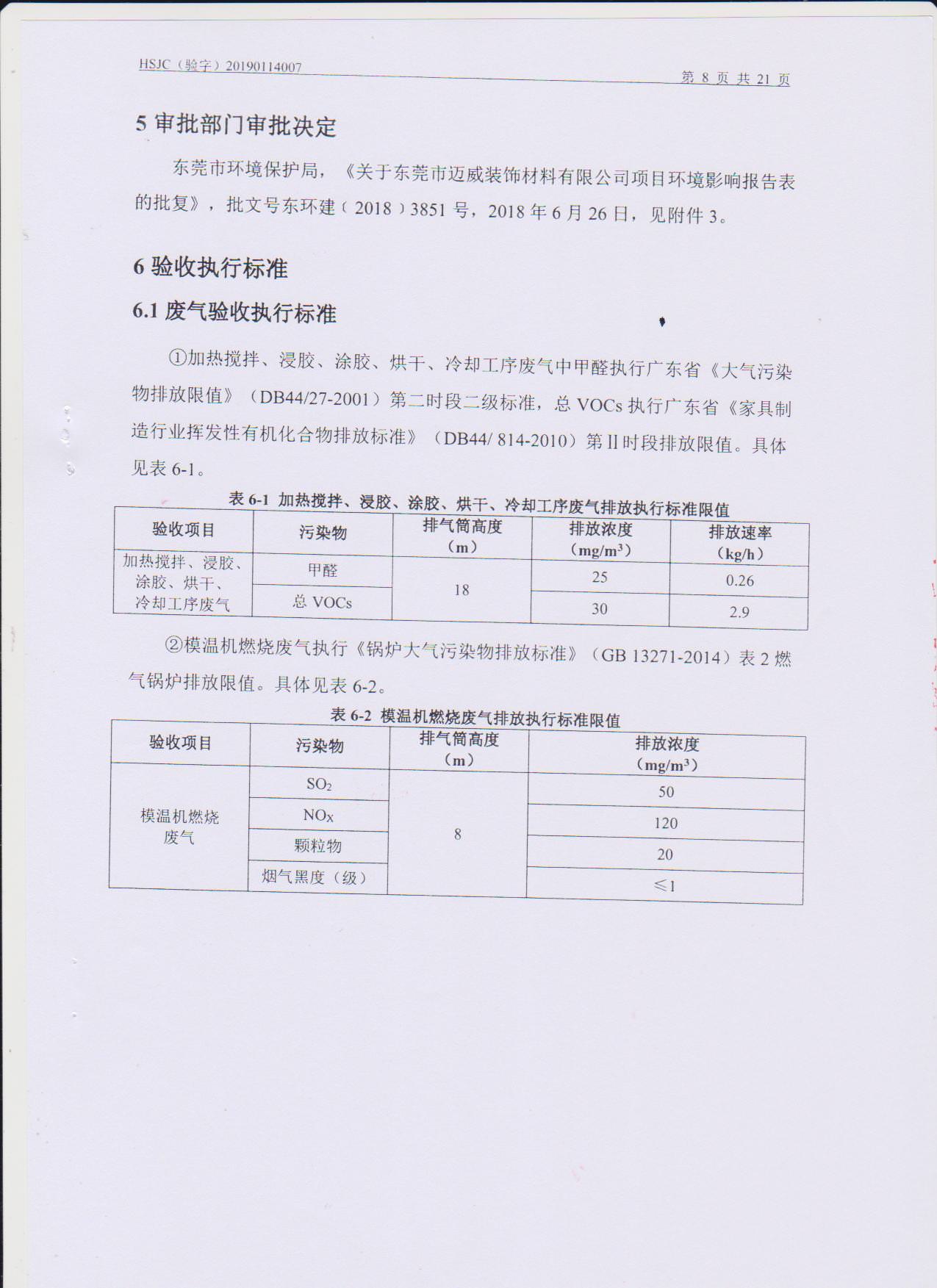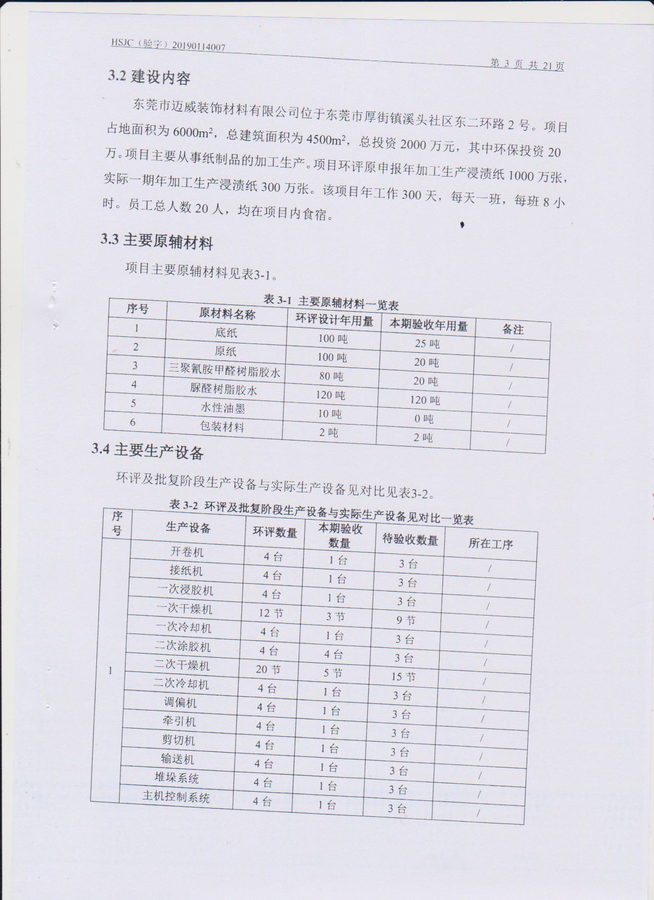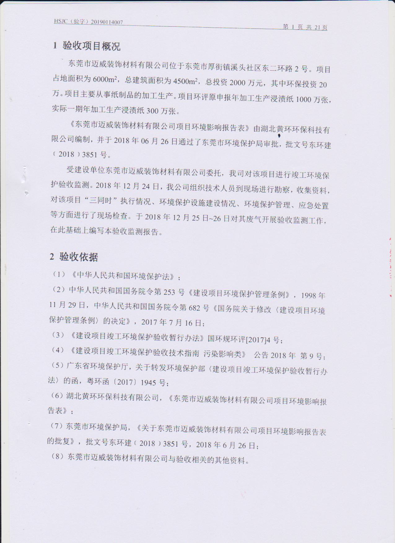 经验收现形成“东莞市迈威装饰材料有限公司生产项目竣工环境保护验收报告”现公开征求意见20个工作日,如有意见请反馈。 联系人:李聪,联系电话:18814145807,公示日期:2019年3月15日