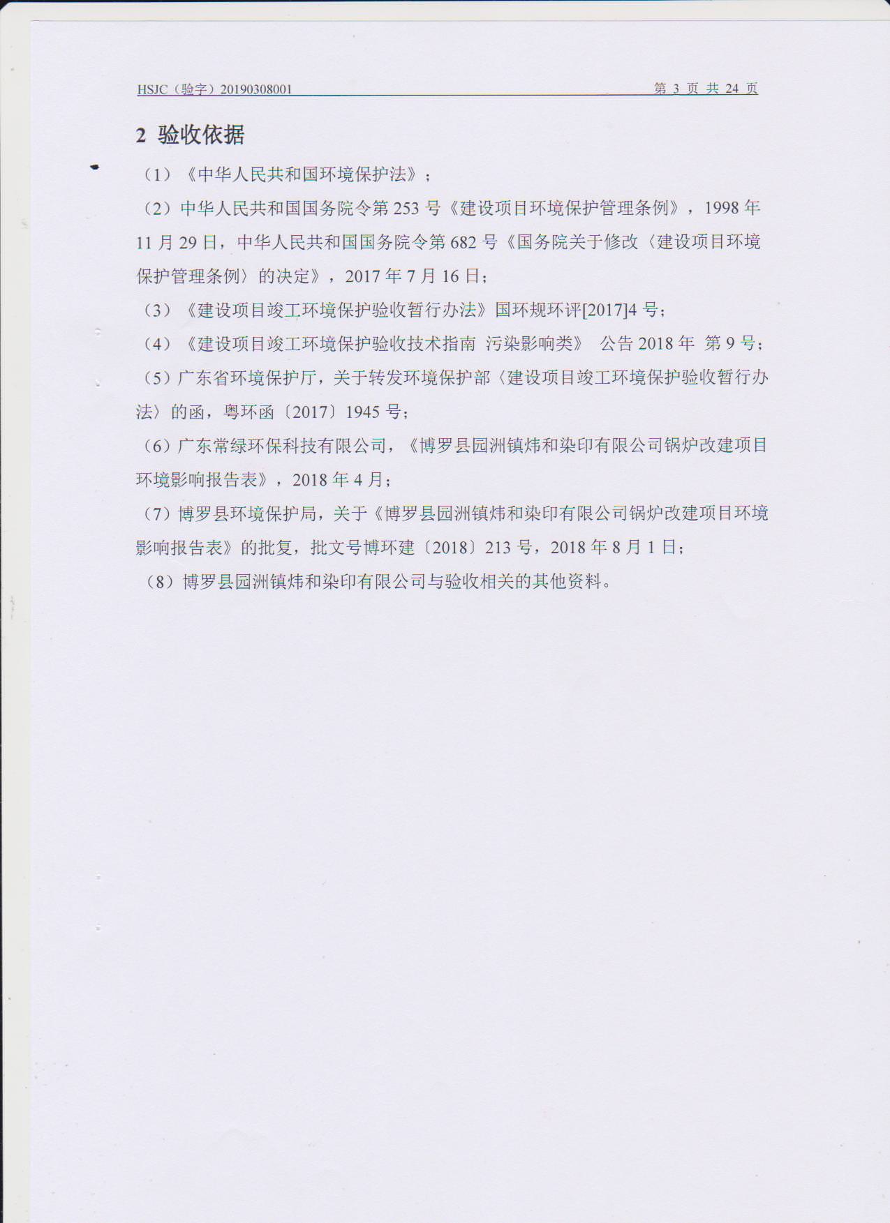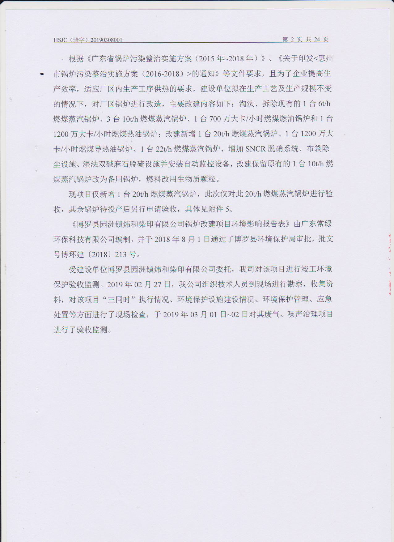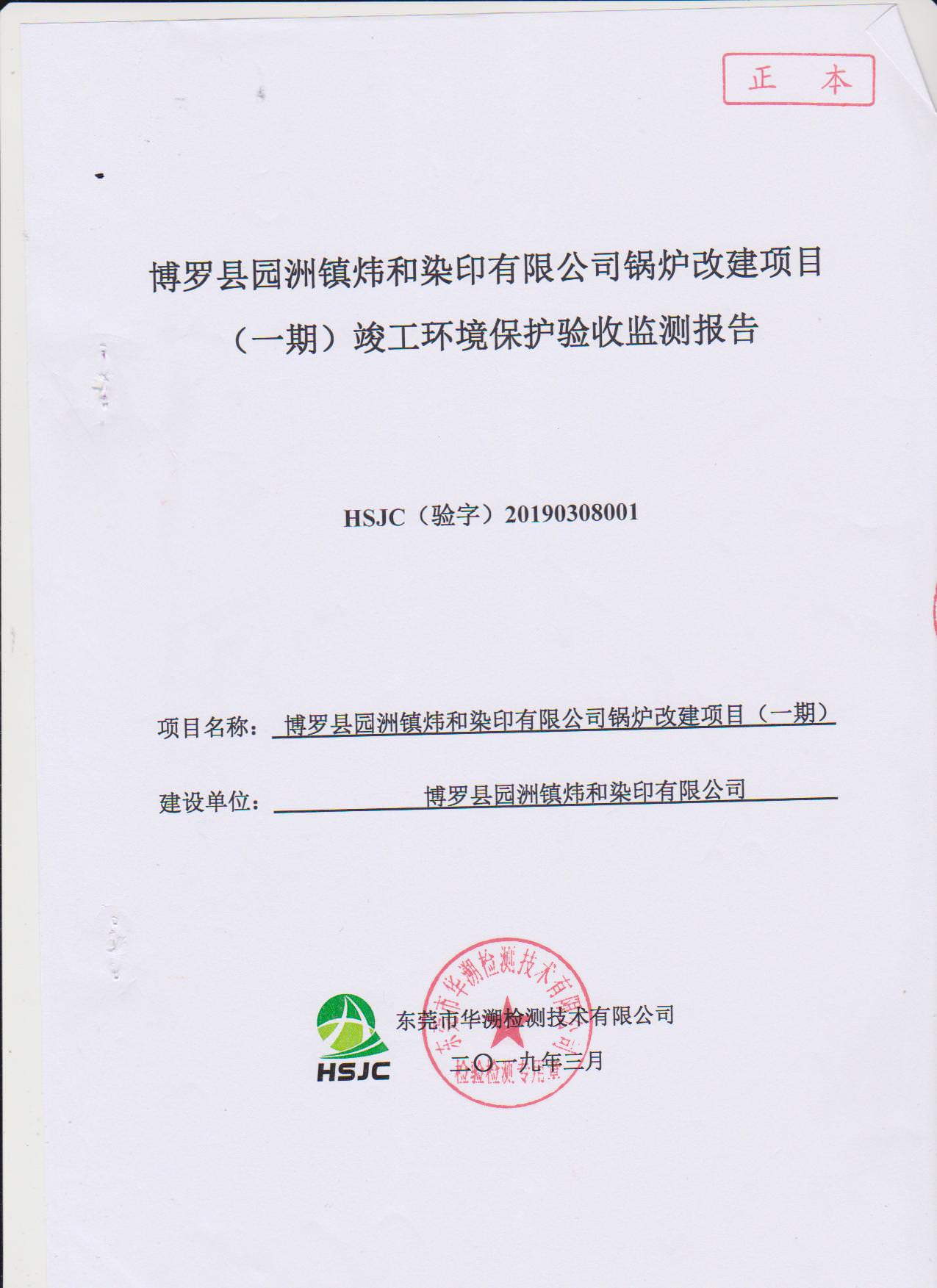 验收现形成“博罗县园洲镇炜和染印有限公司锅炉改建项目(一期)竣工环境保护验收报告”现公开征求意见20个工作日,如有意见请反馈。 联系人:李聪,联系电话:18814145807,公示日期:2019年4月1日