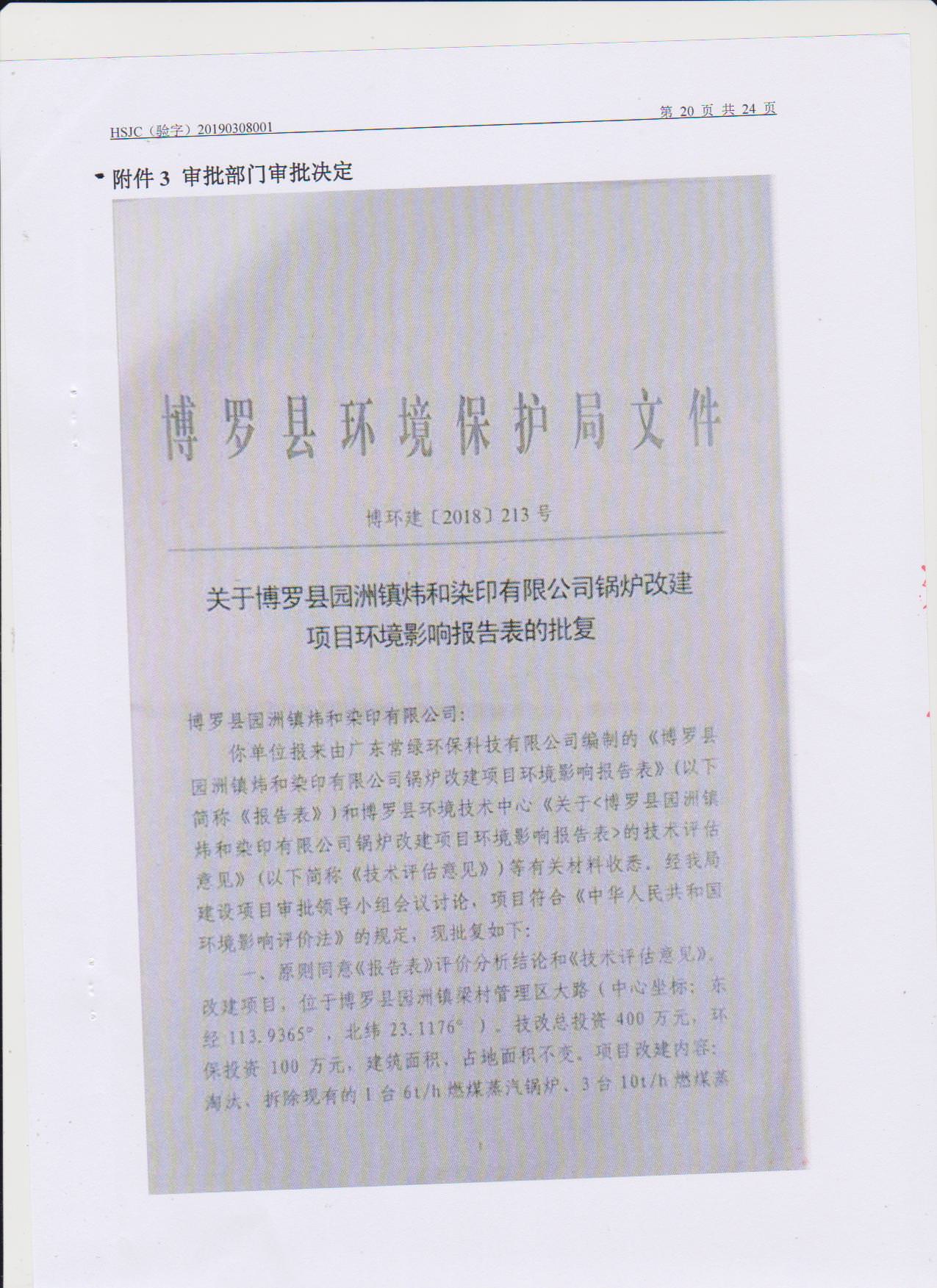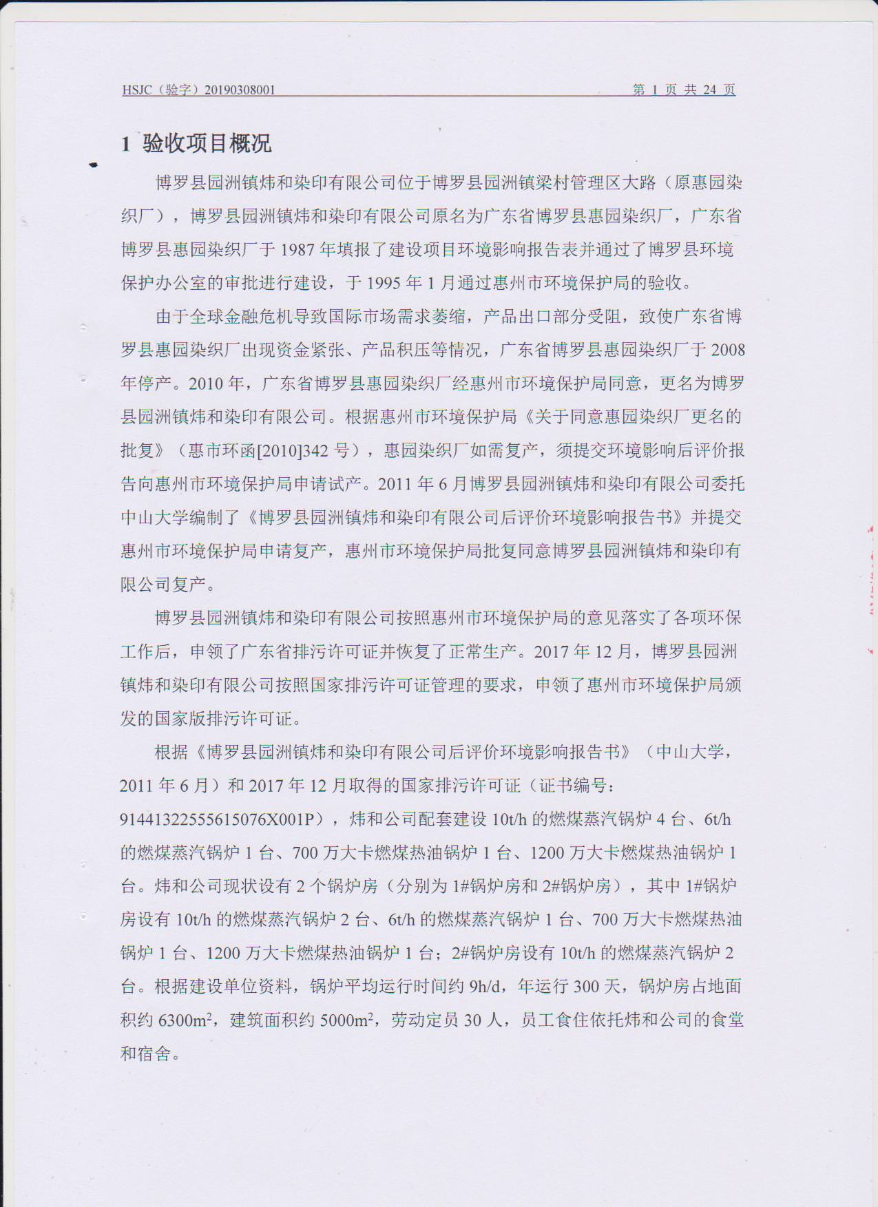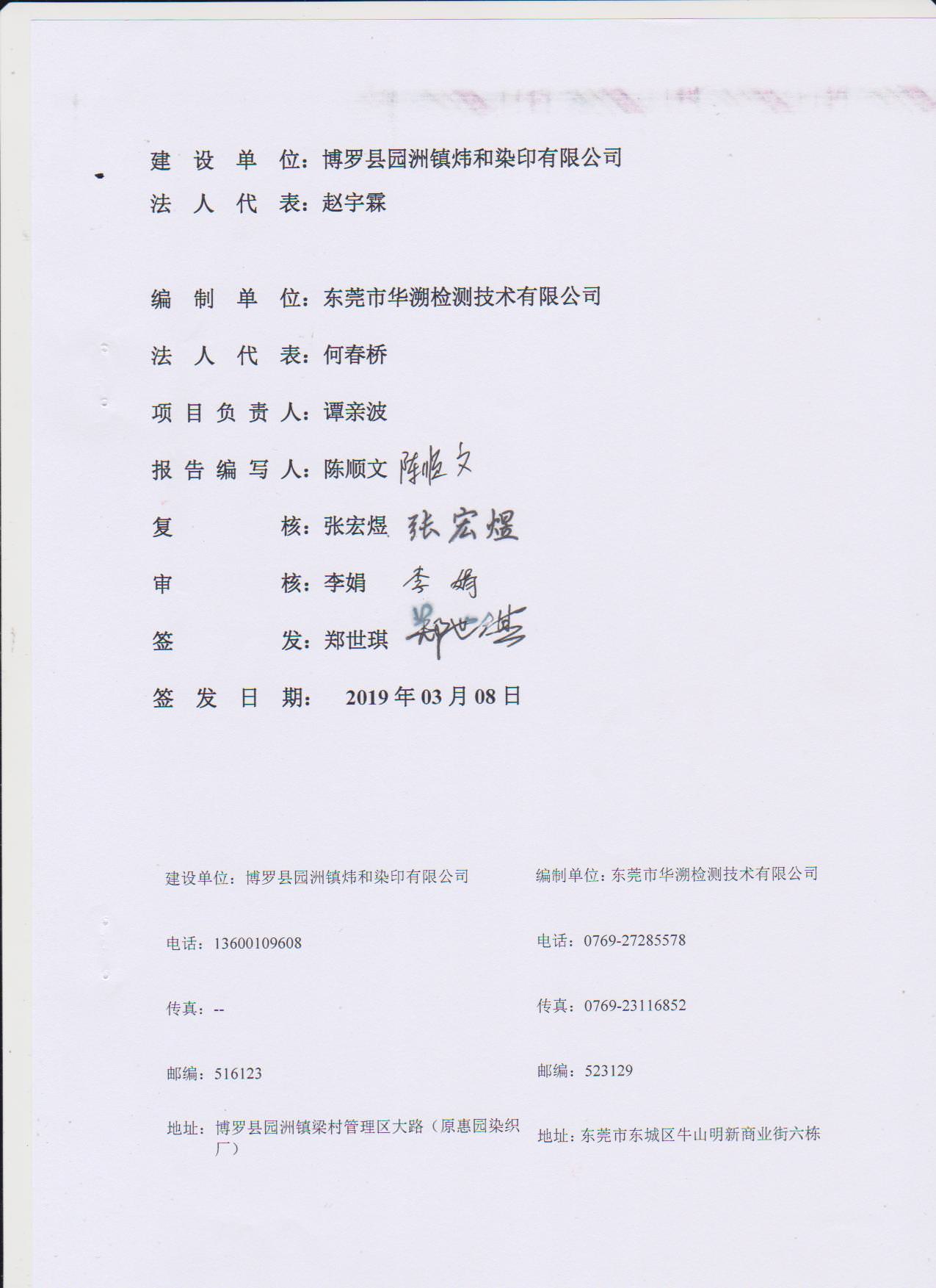 验收现形成“博罗县园洲镇炜和染印有限公司锅炉改建项目(一期)竣工环境保护验收报告”现公开征求意见20个工作日,如有意见请反馈。 联系人:李聪,联系电话:18814145807,公示日期:2019年4月1日