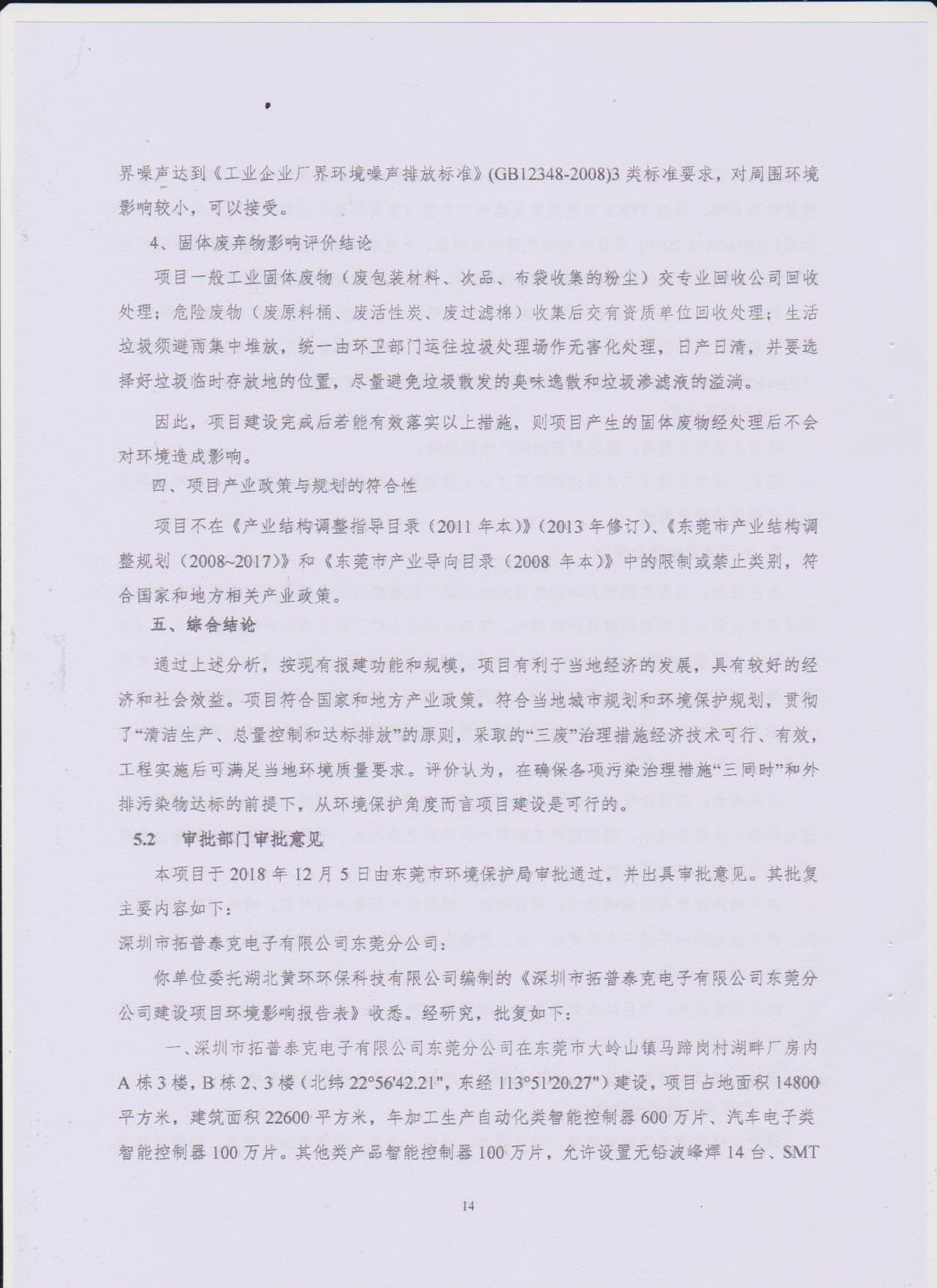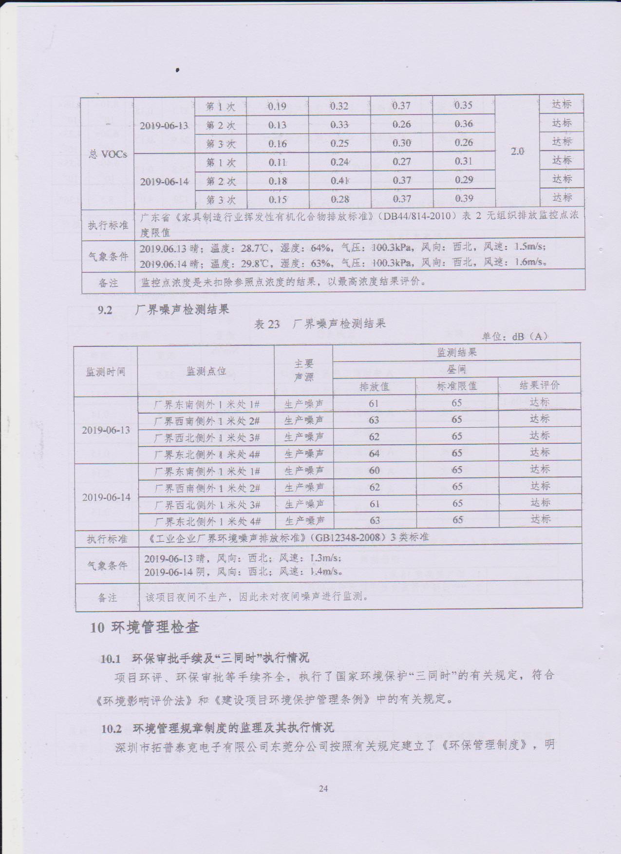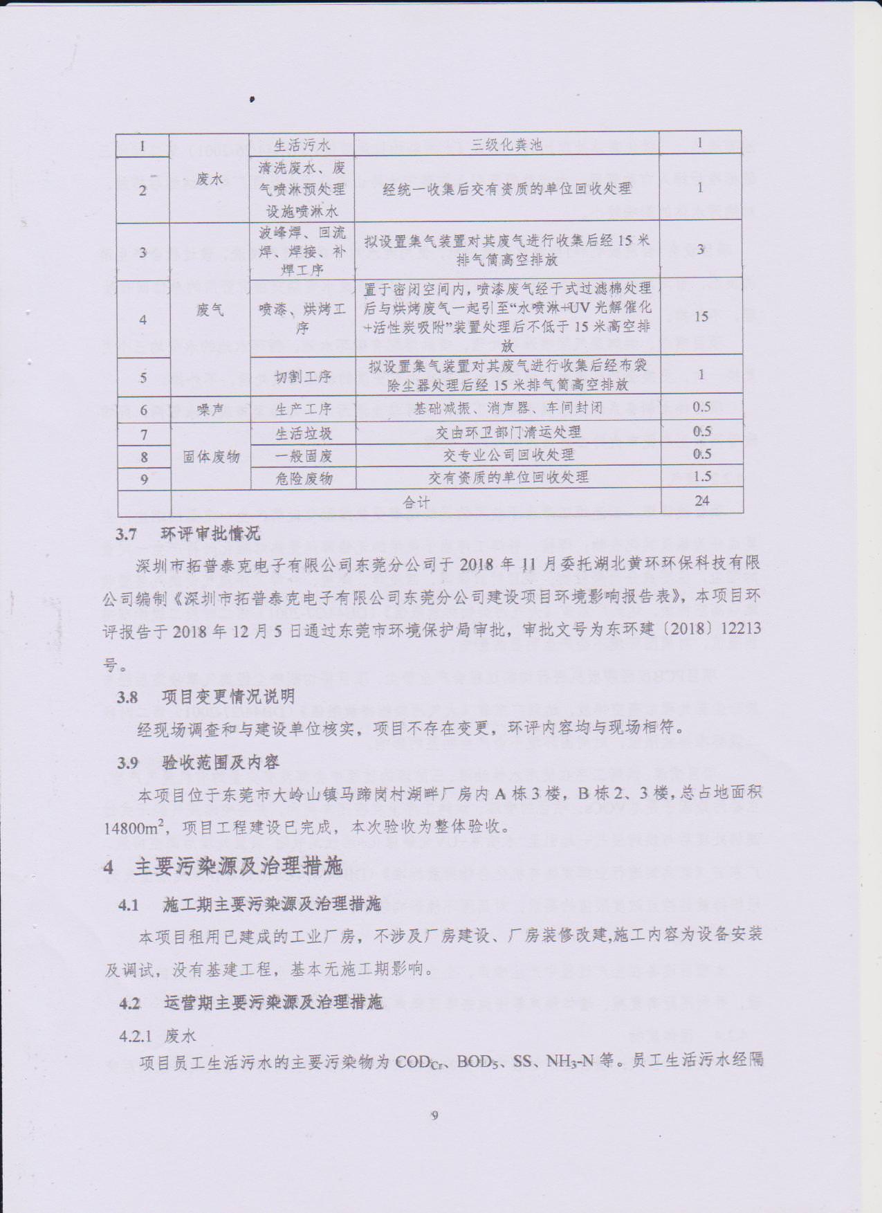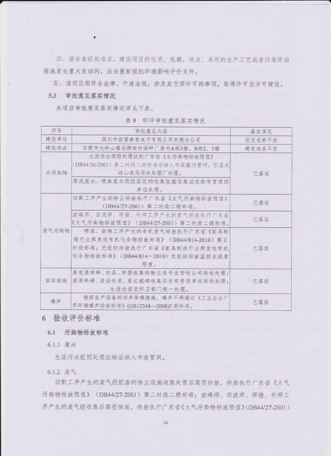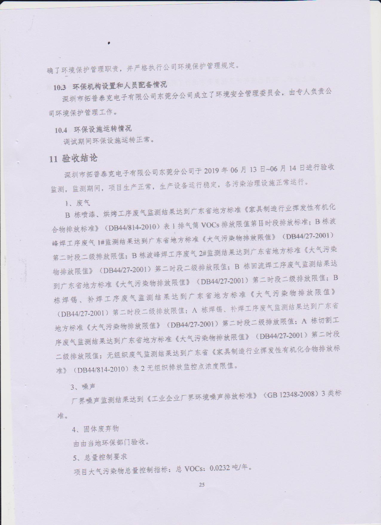 验收现形成“深圳市拓普泰克电子有限公司东莞分公司建设项目竣工环境保护验收报告”现公开征求意见20个工作日,如有意见请反馈。 联系人:李聪,联系电话:18814145807,公示日期:2019年7月26日