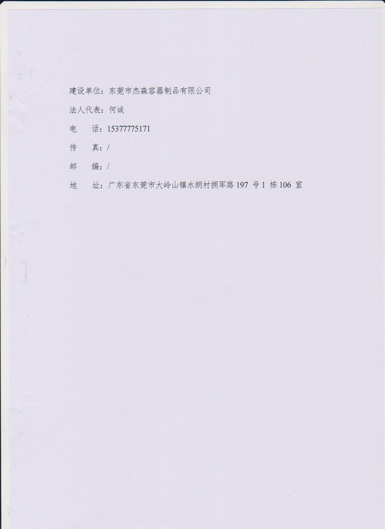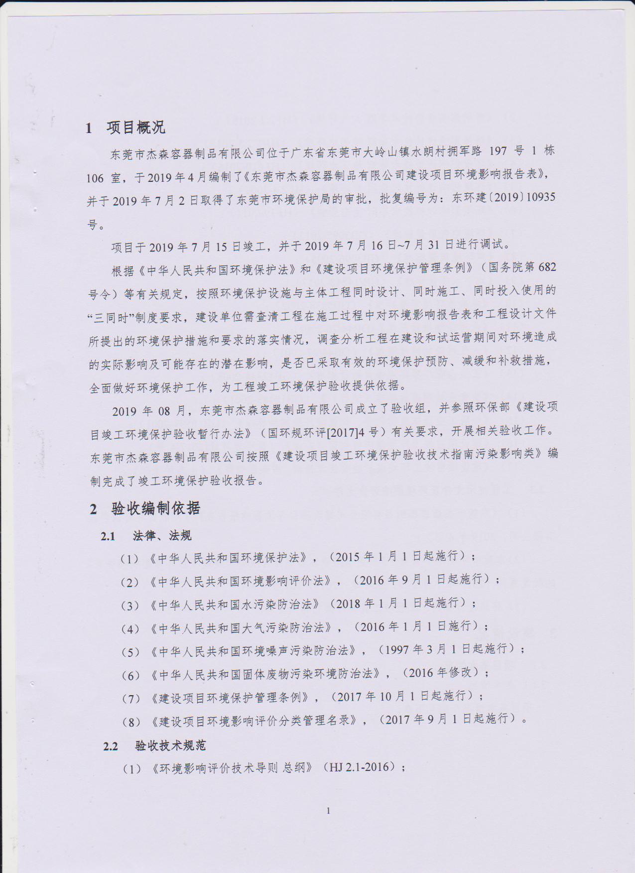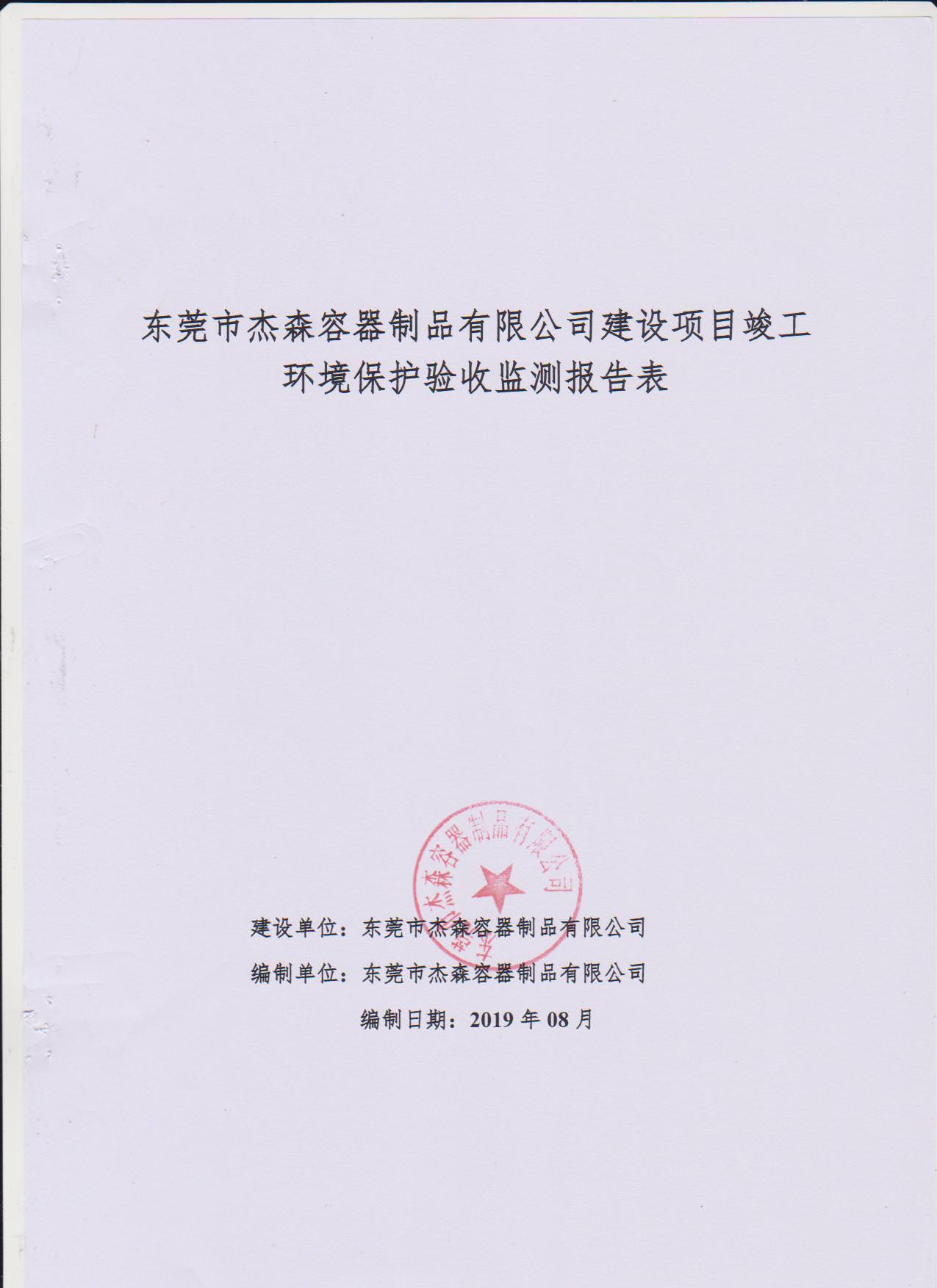 经验收现形成东莞市杰森容器制品有限公司建设项目竣工环境保护验收报告”现公开征求意见20个工作日,如有意见请反馈。 联系人:李聪,联系电话:18814145807,公示日期:2019年8月29日