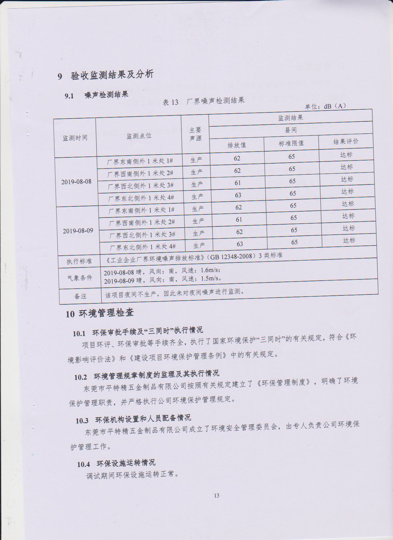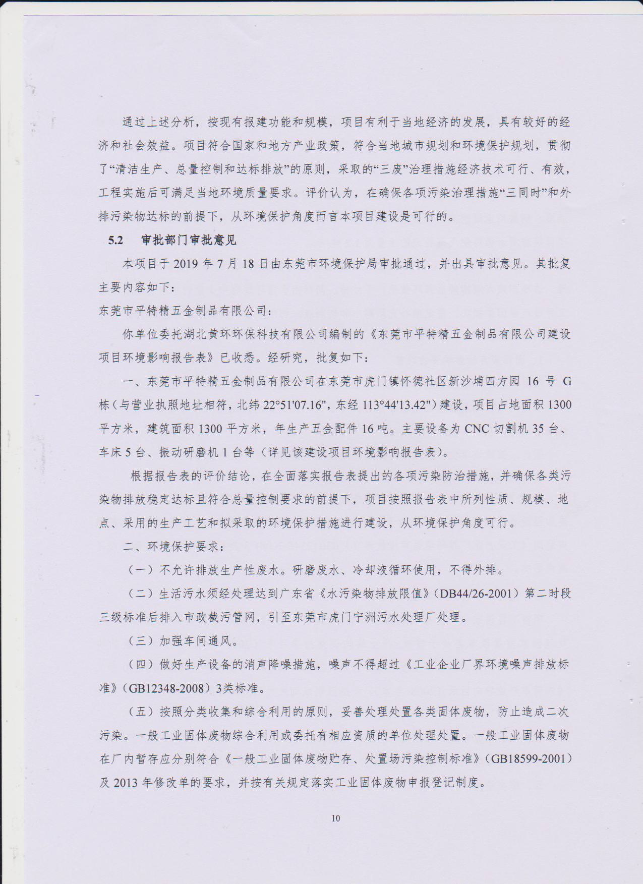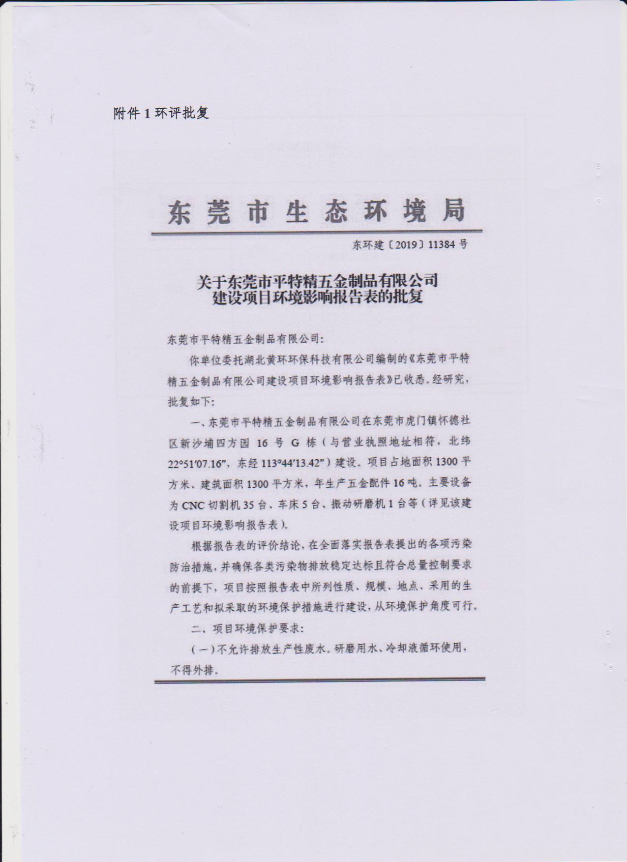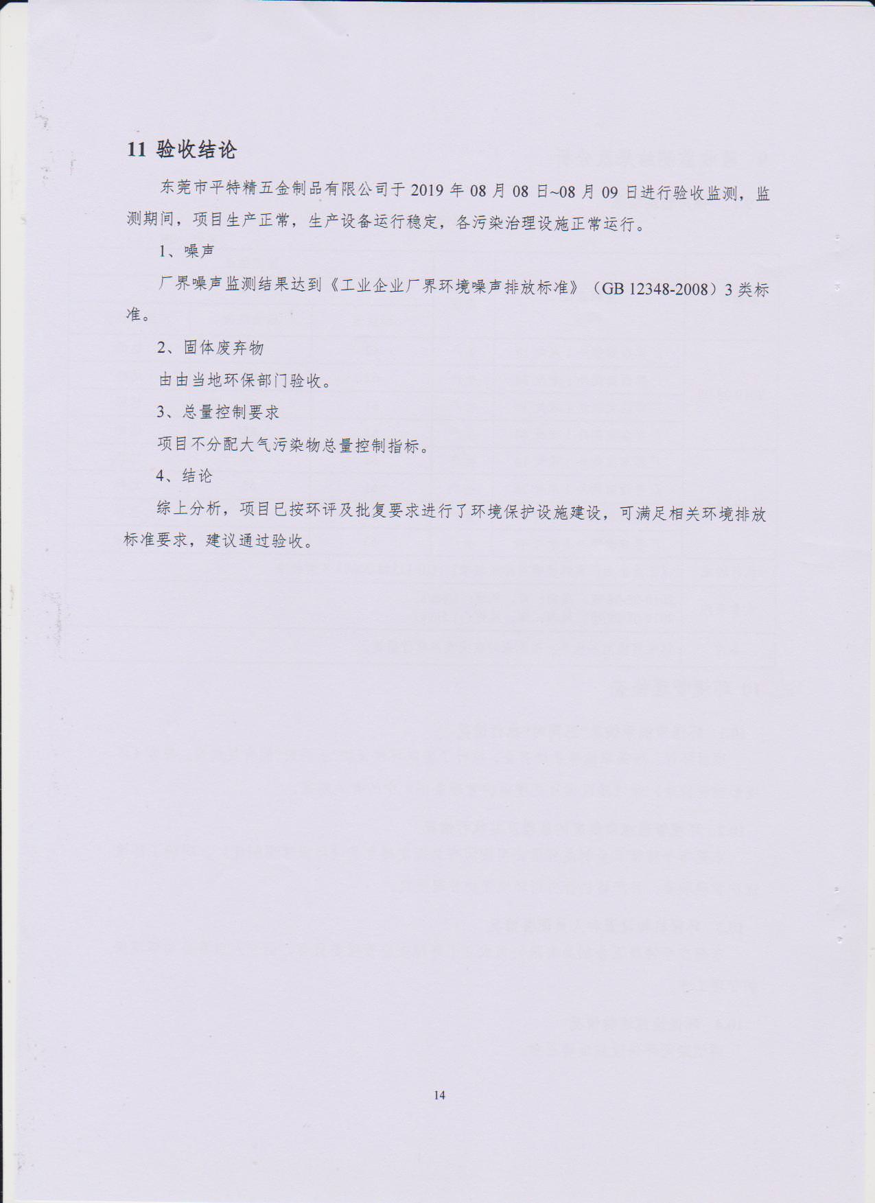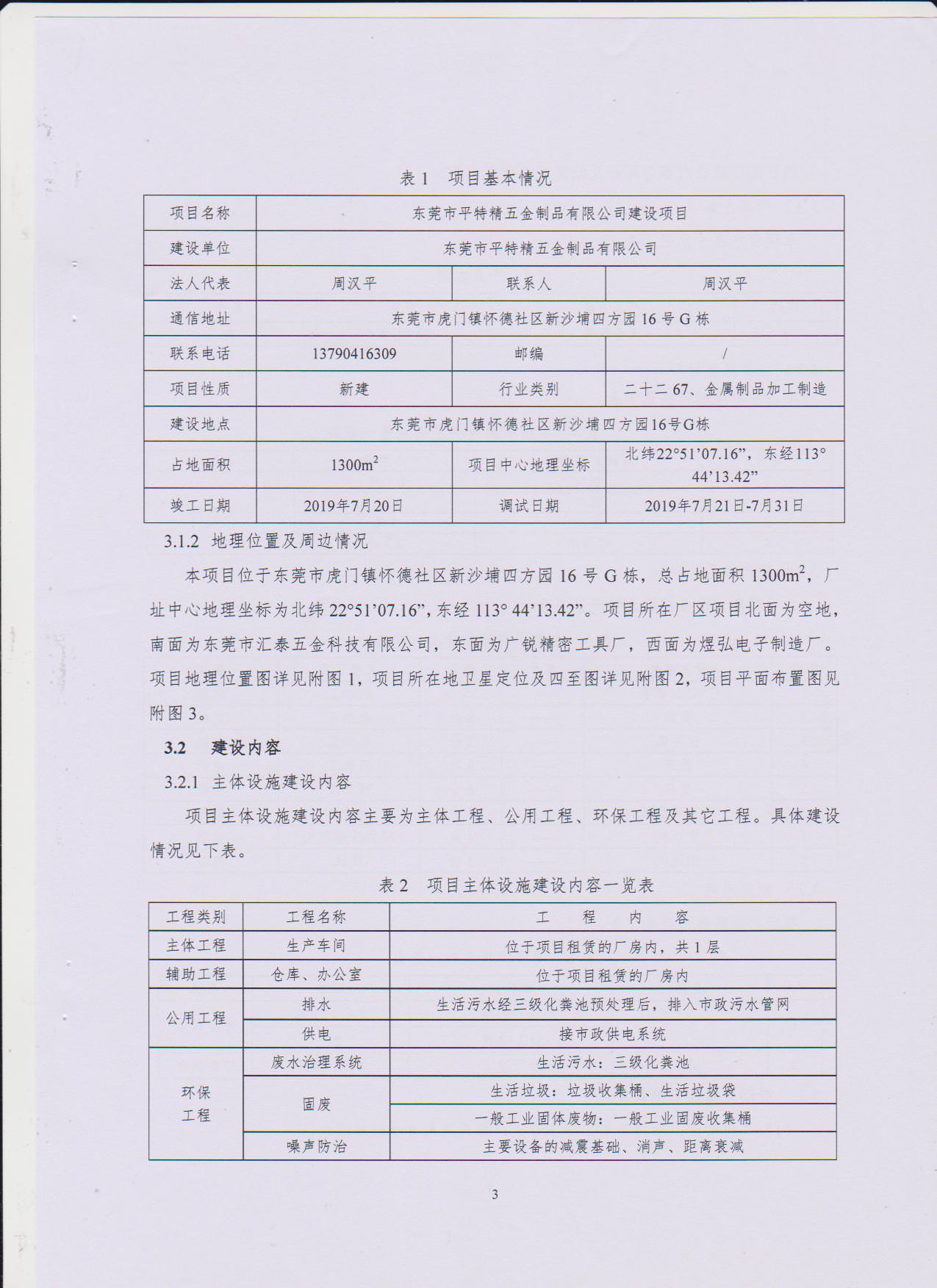 经验收现形成东莞市平特精五金制品有限公司建设项目竣工环境保护验收报告”现公开征求意见20个工作日,如有意见请反馈。 联系人:李聪,联系电话:18814145807,公示日期:2019年9月03日