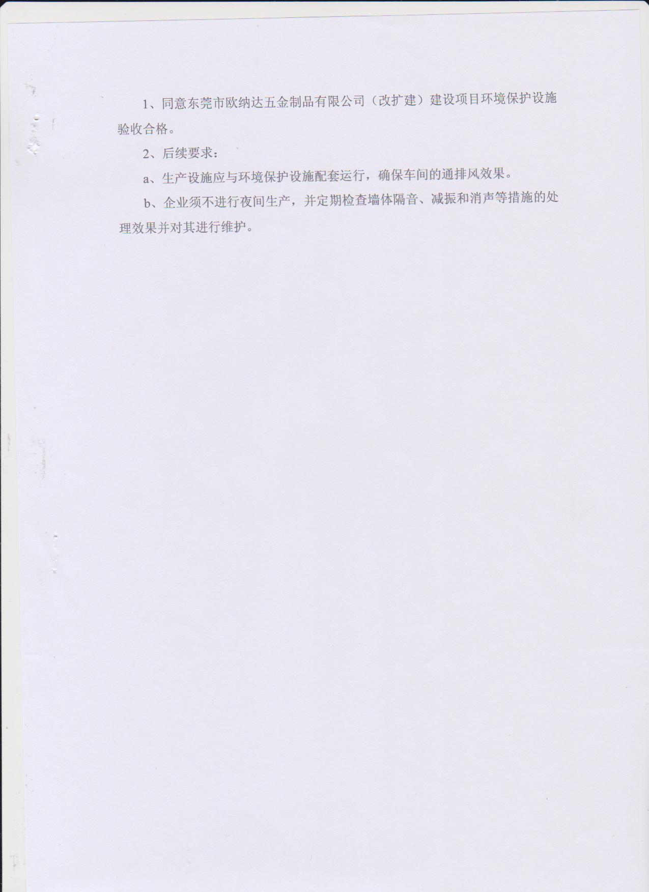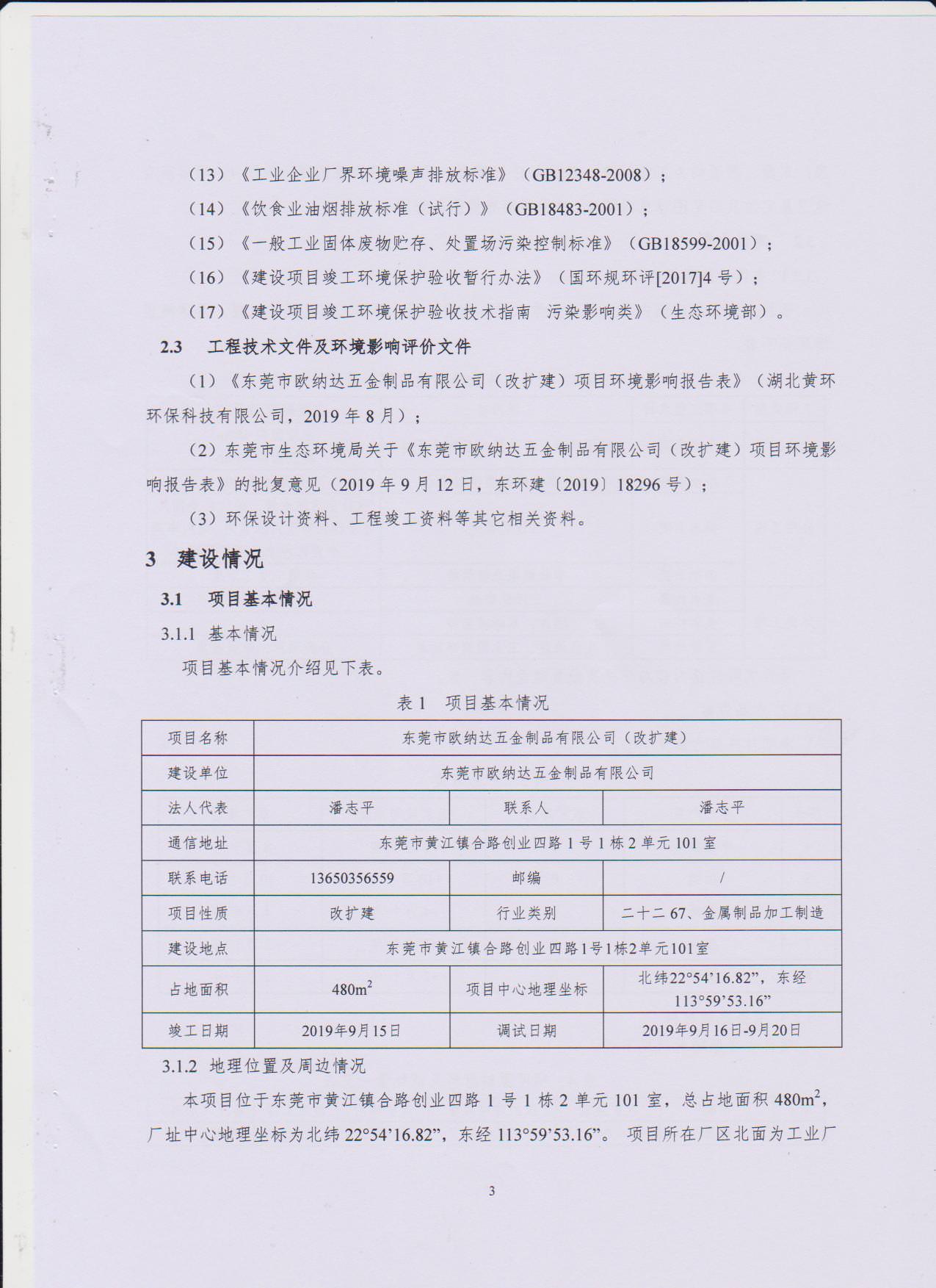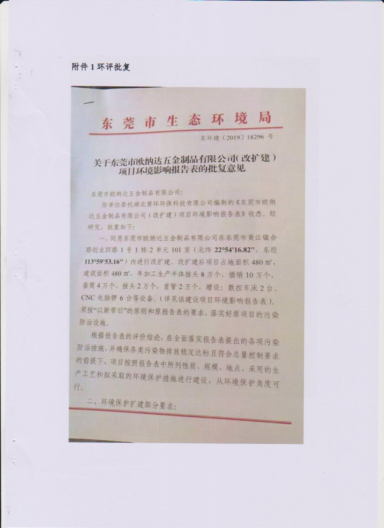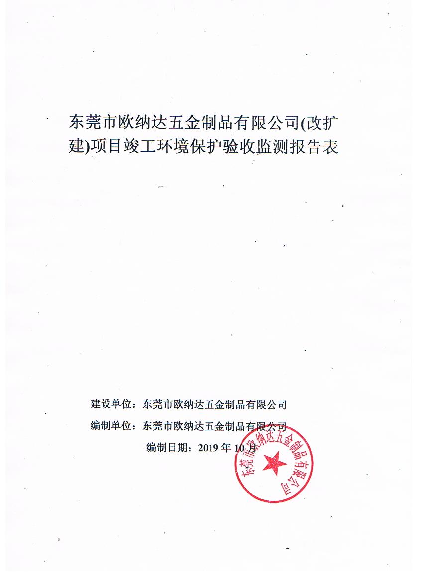 经验收现形成东莞市欧纳达五金制品有限公司建设项目竣工环境保护验收报告”现公开征求意见20个工作日,如有意见请反馈。 联系人:李聪,联系电话:18814145807,公示日期:2019年11月4日