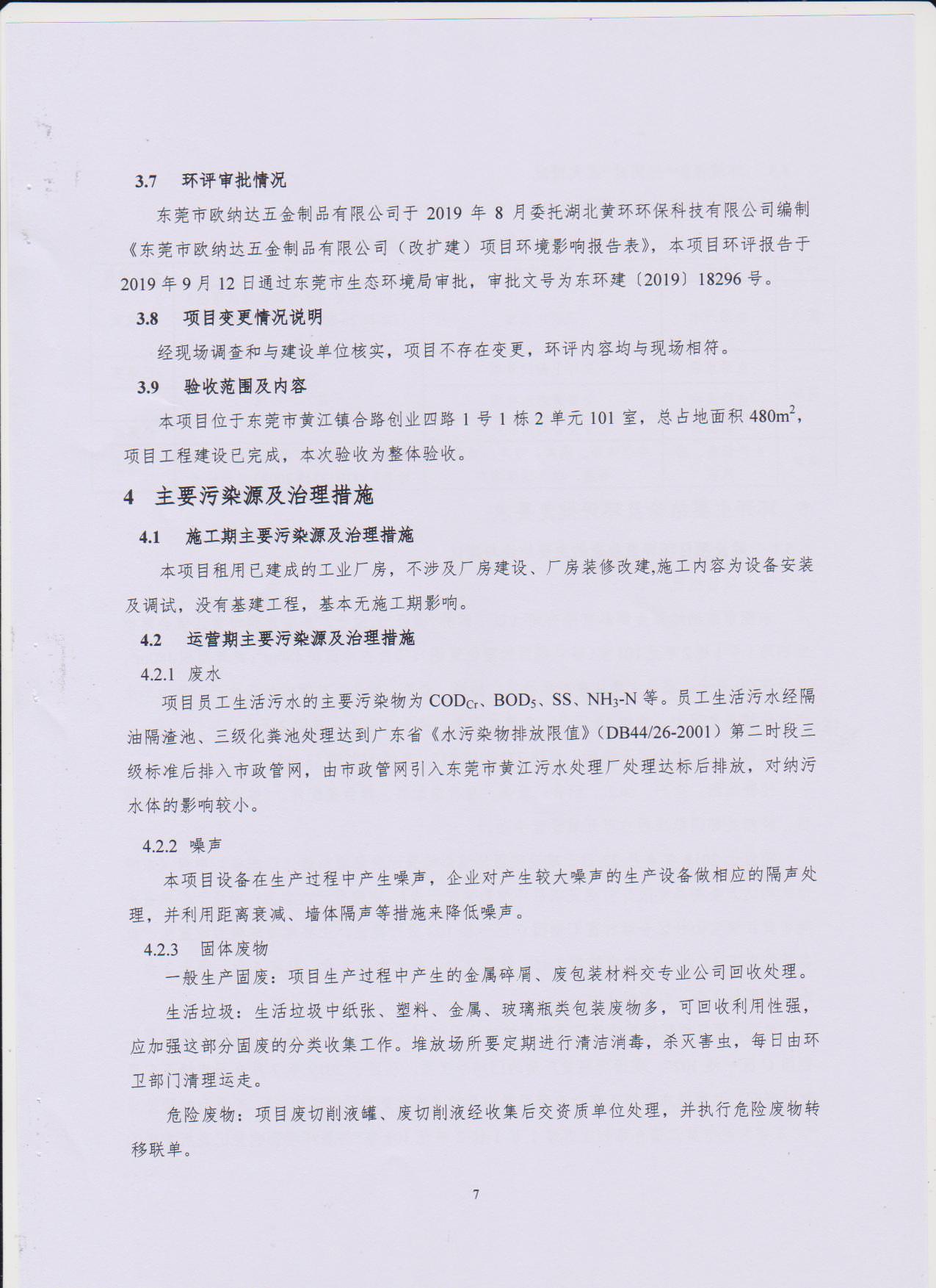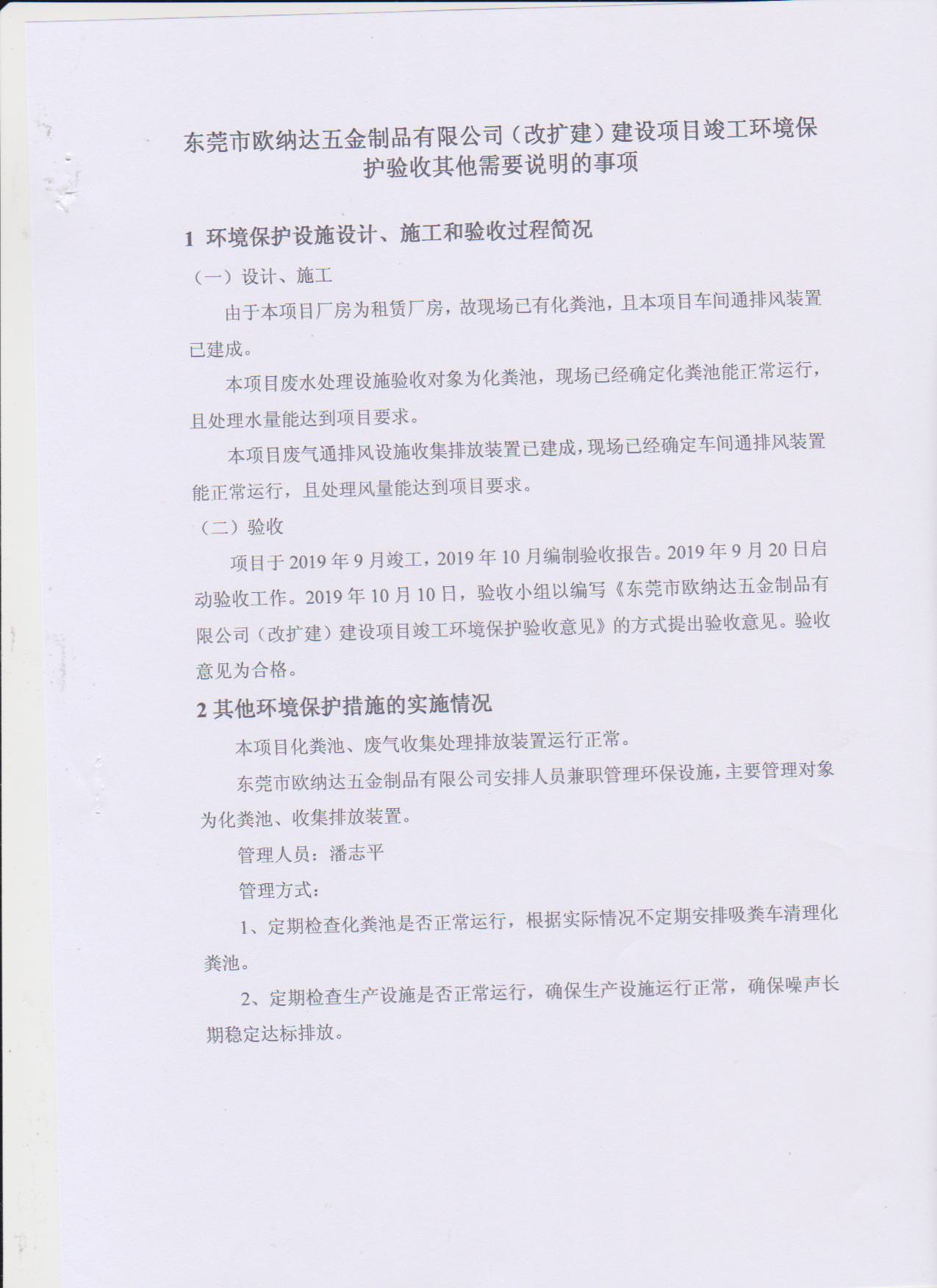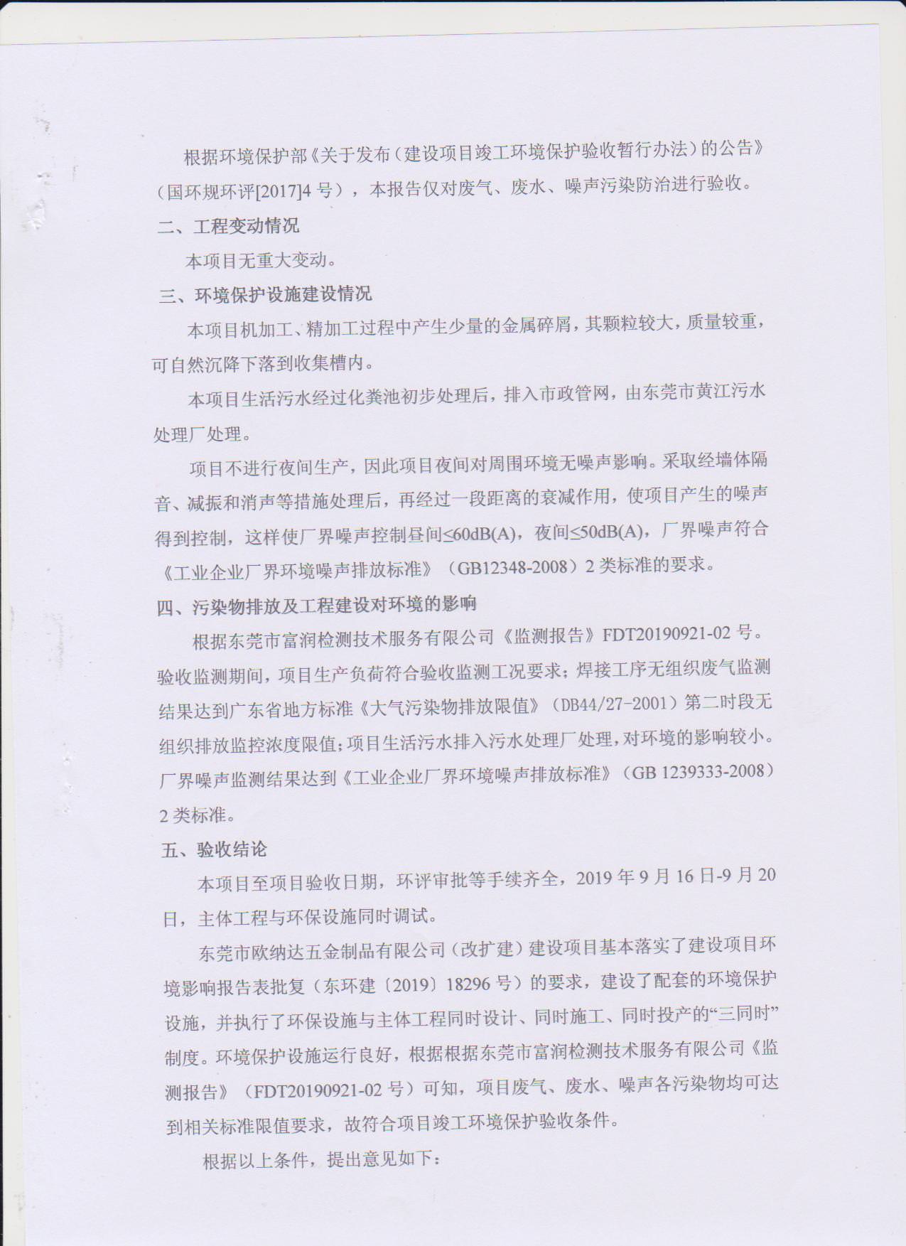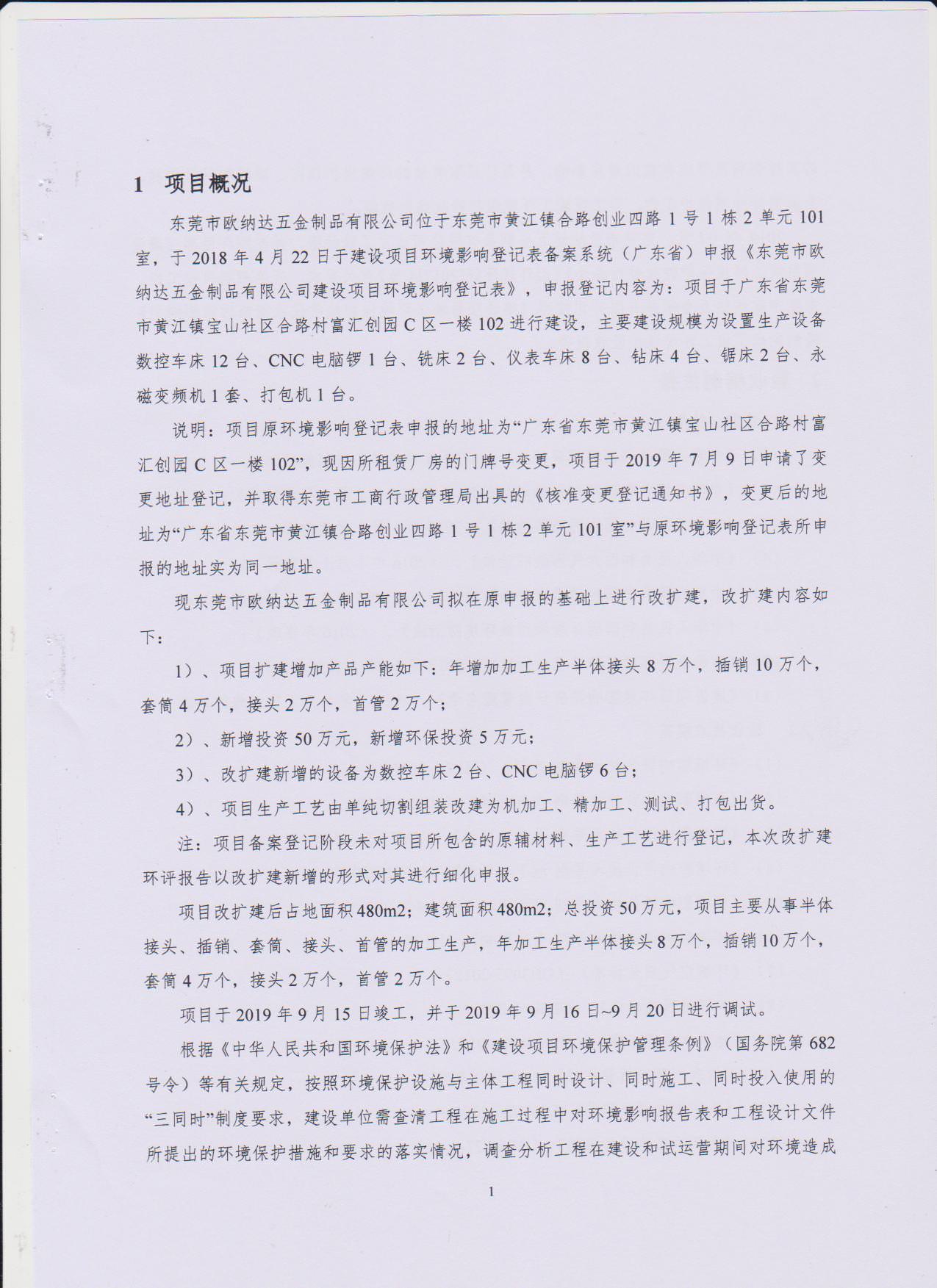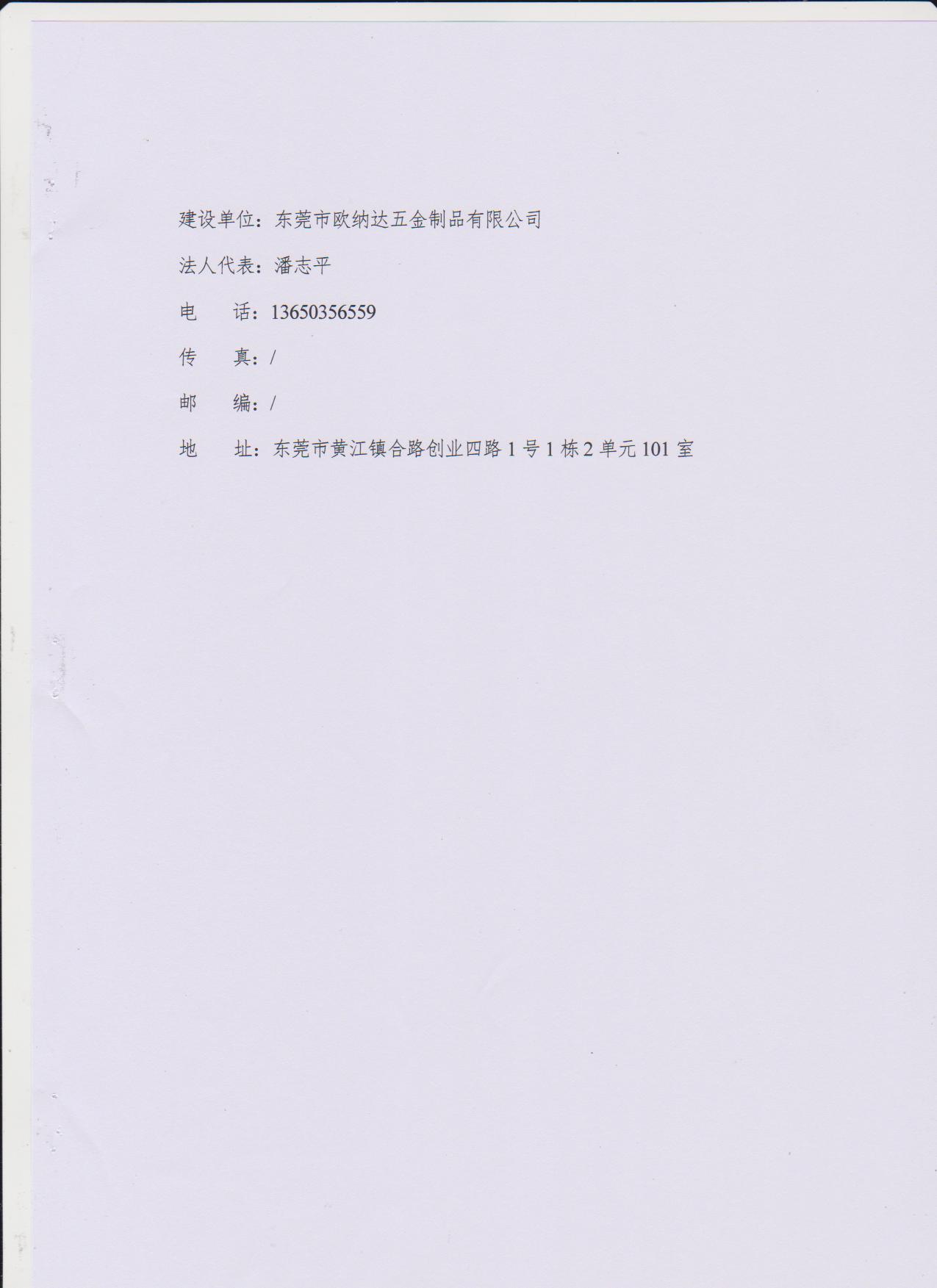 经验收现形成东莞市欧纳达五金制品有限公司建设项目竣工环境保护验收报告”现公开征求意见20个工作日,如有意见请反馈。 联系人:李聪,联系电话:18814145807,公示日期:2019年11月4日