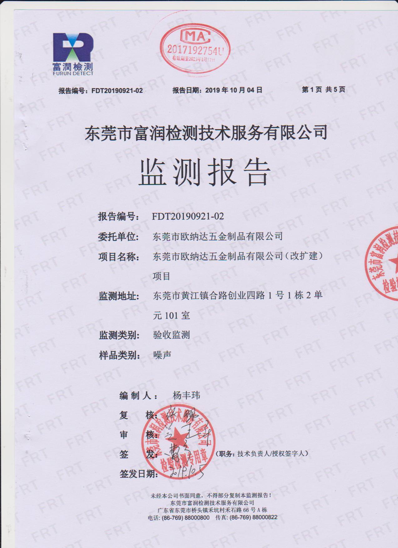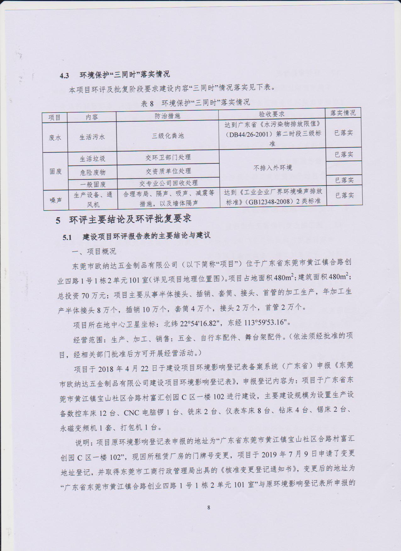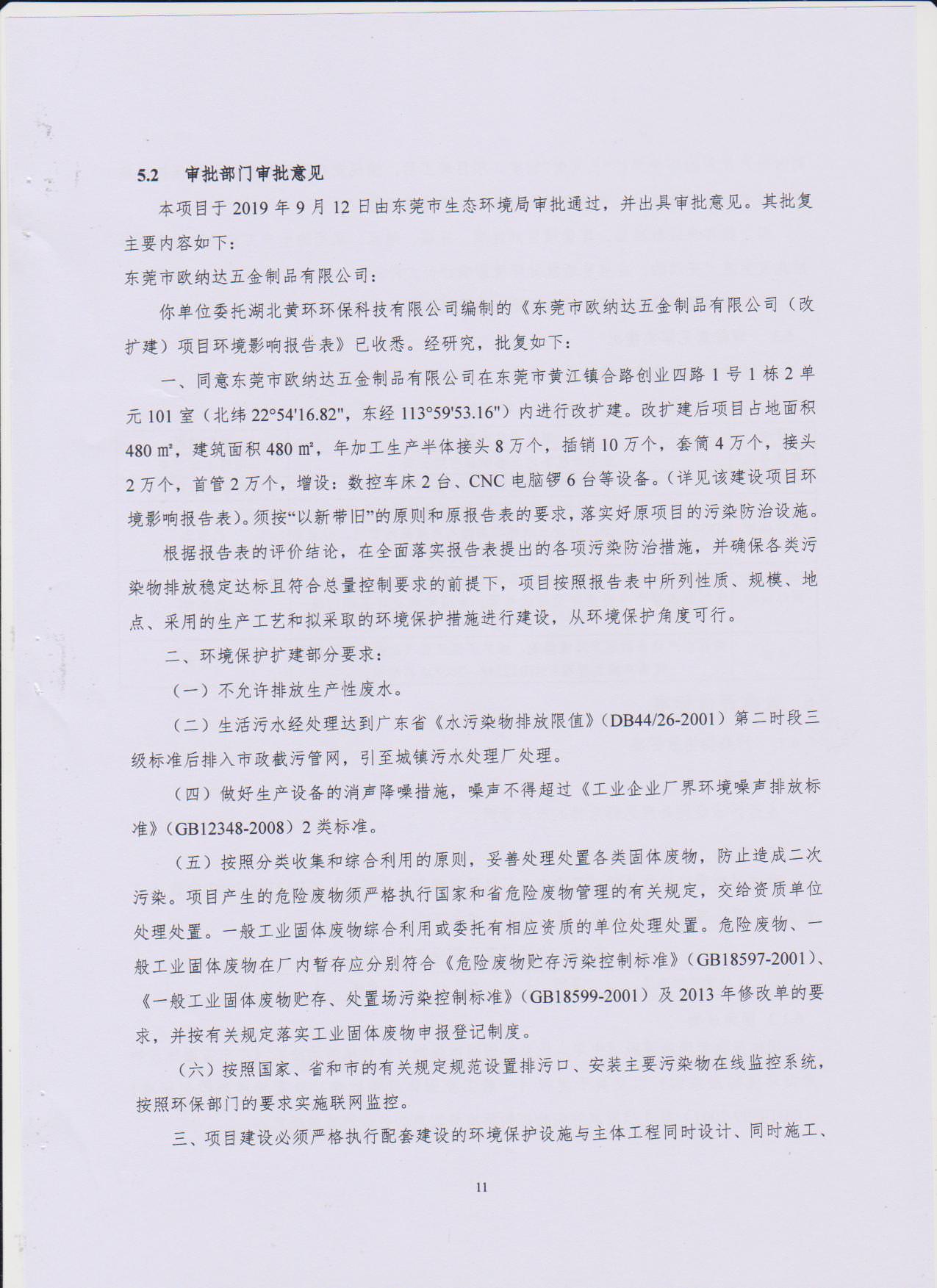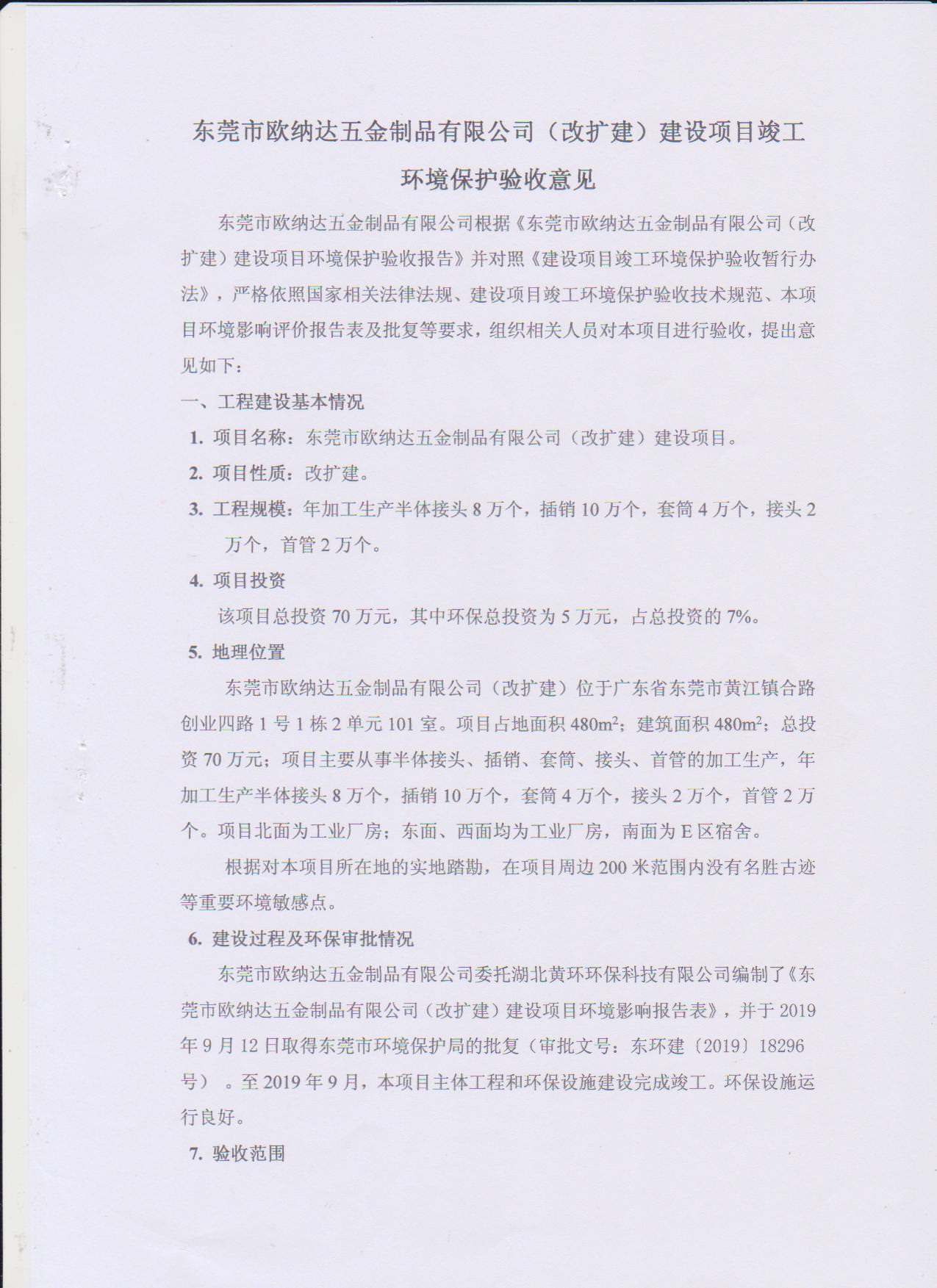 经验收现形成东莞市欧纳达五金制品有限公司建设项目竣工环境保护验收报告”现公开征求意见20个工作日,如有意见请反馈。 联系人:李聪,联系电话:18814145807,公示日期:2019年11月4日