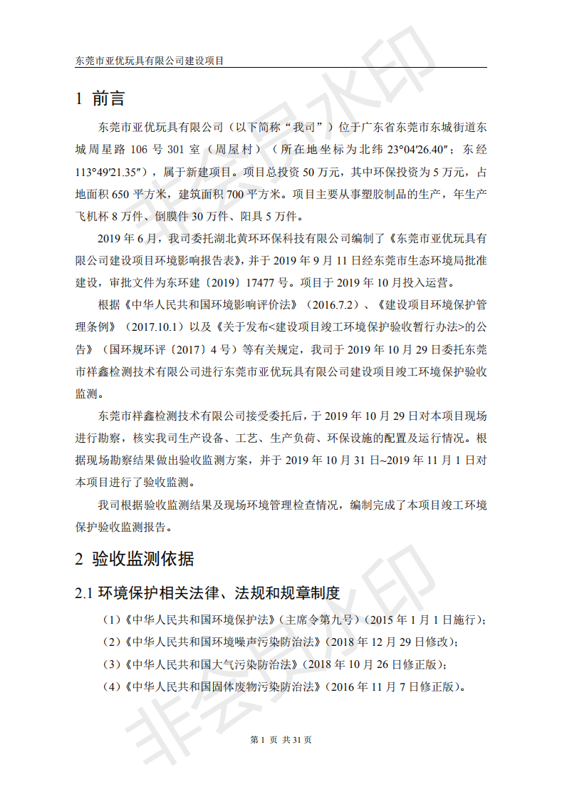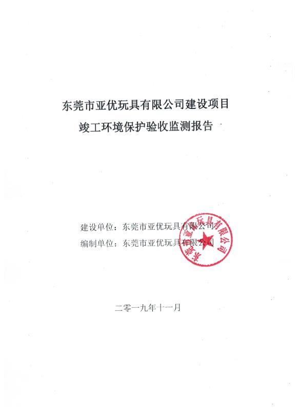 经验收现形成东莞市亚优玩具有限公司建设项目竣工环境保护验收报告”现公开征求意见20个工作日,如有意见请反馈。 联系人:李聪,联系电话:18814145807,公示日期:2019年12月13日日