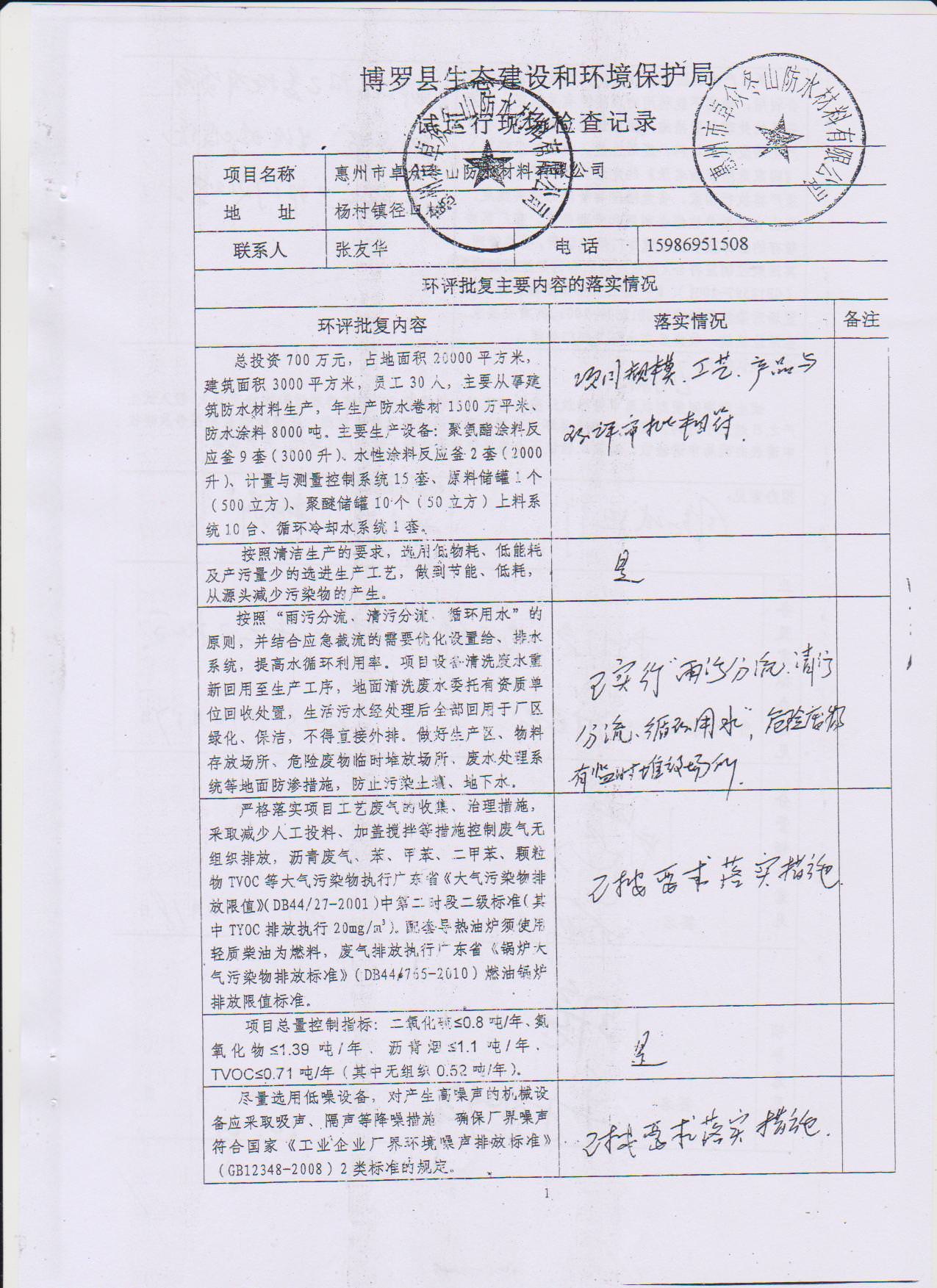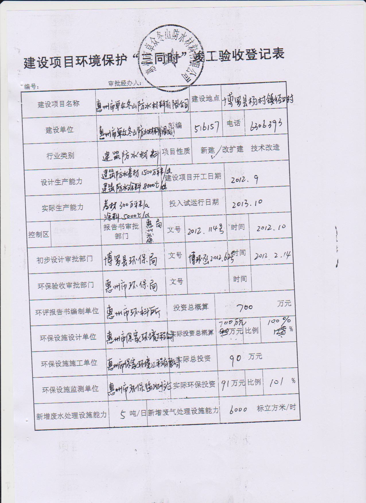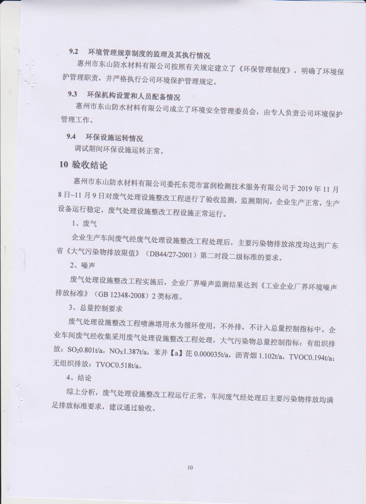 经验收现形成惠州市东山防水材料有限公司建设项目竣工环境保护验收报告”现公开征求意见20个工作日,如有意见请反馈。 联系人:李聪,联系电话:18814145807,公示日期:2019年11月18日