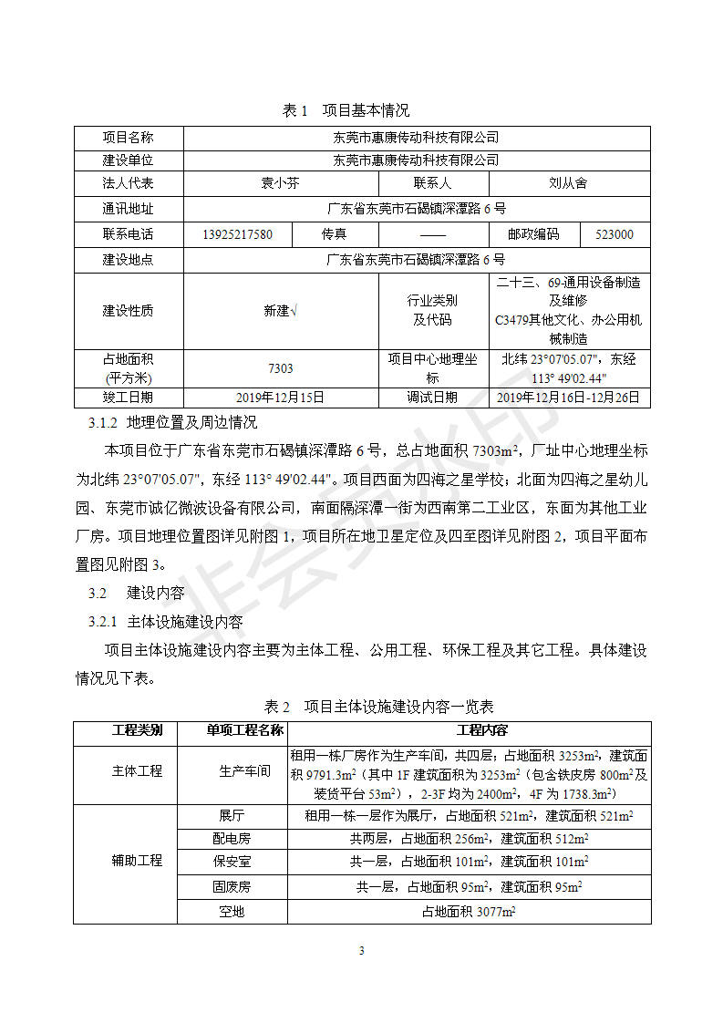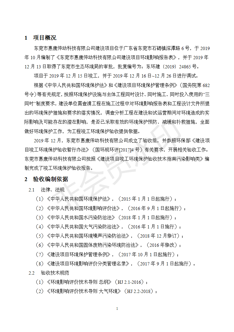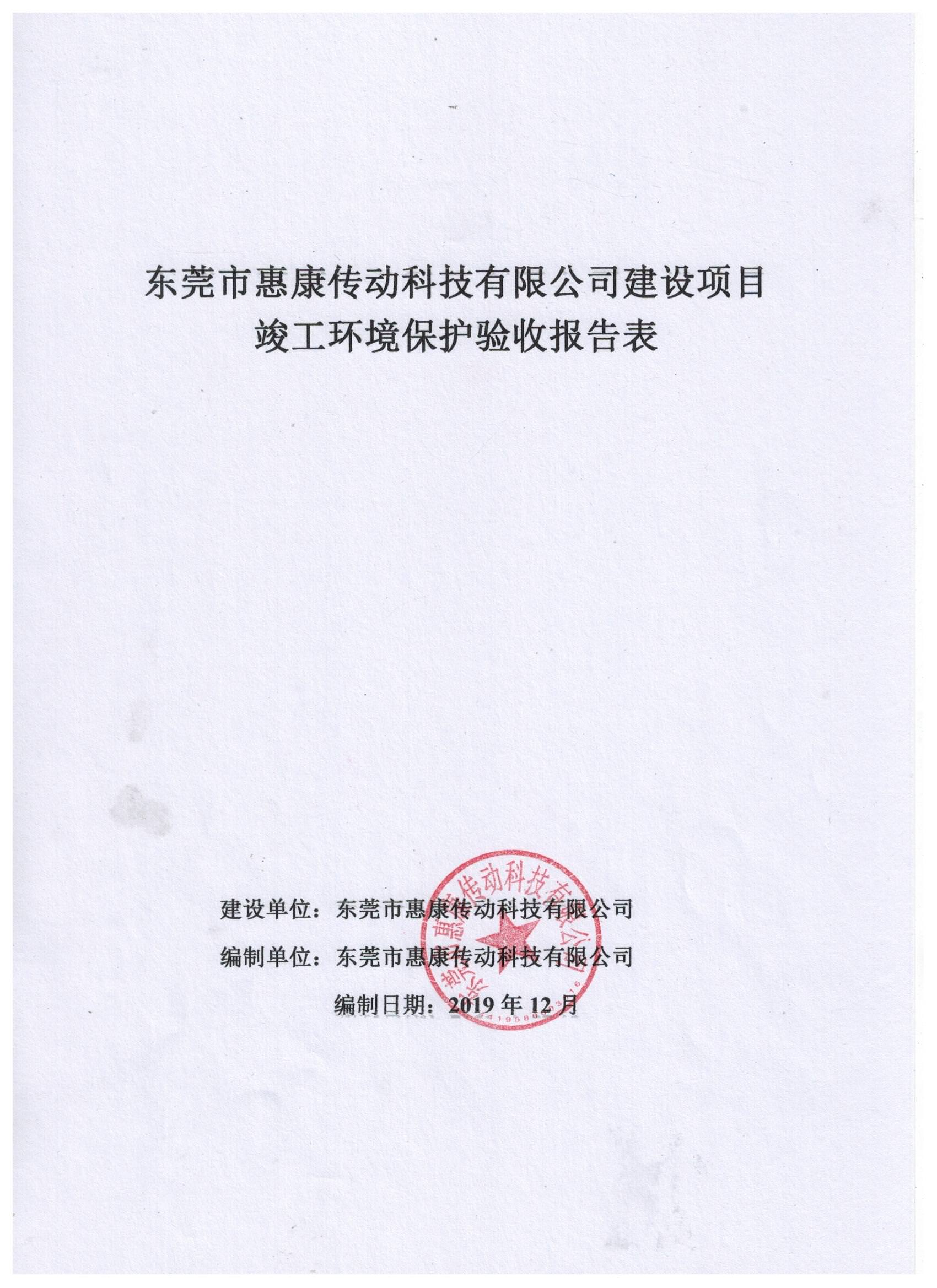 经验收现形成东莞市惠康传动科技有限公司建设项目竣工环境保护验收报告”现公开征求意见20个工作日,如有意见请反馈。 联系人:李聪,联系电话:18814145807,公示日期:2020年2月27日