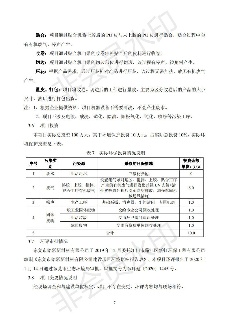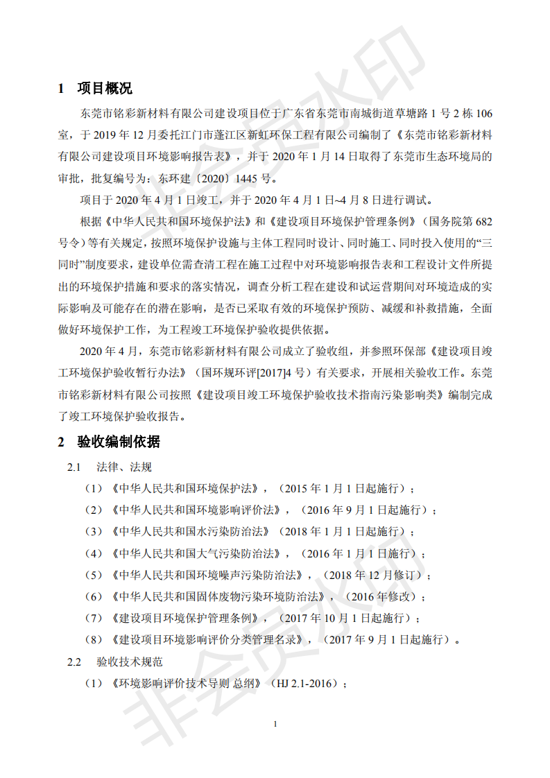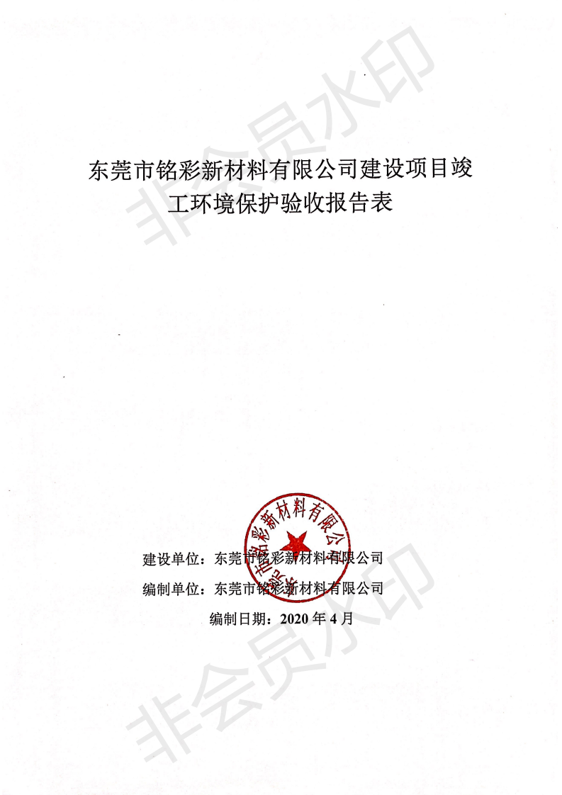 验收现形成“东莞市铭彩新材料有限公司建设项目竣工环境保护验收报告”现公开征求意见20个工作日,如有意见请反馈。 联系人:李聪,联系电话:18814145807,公示日期:2020年5月11日