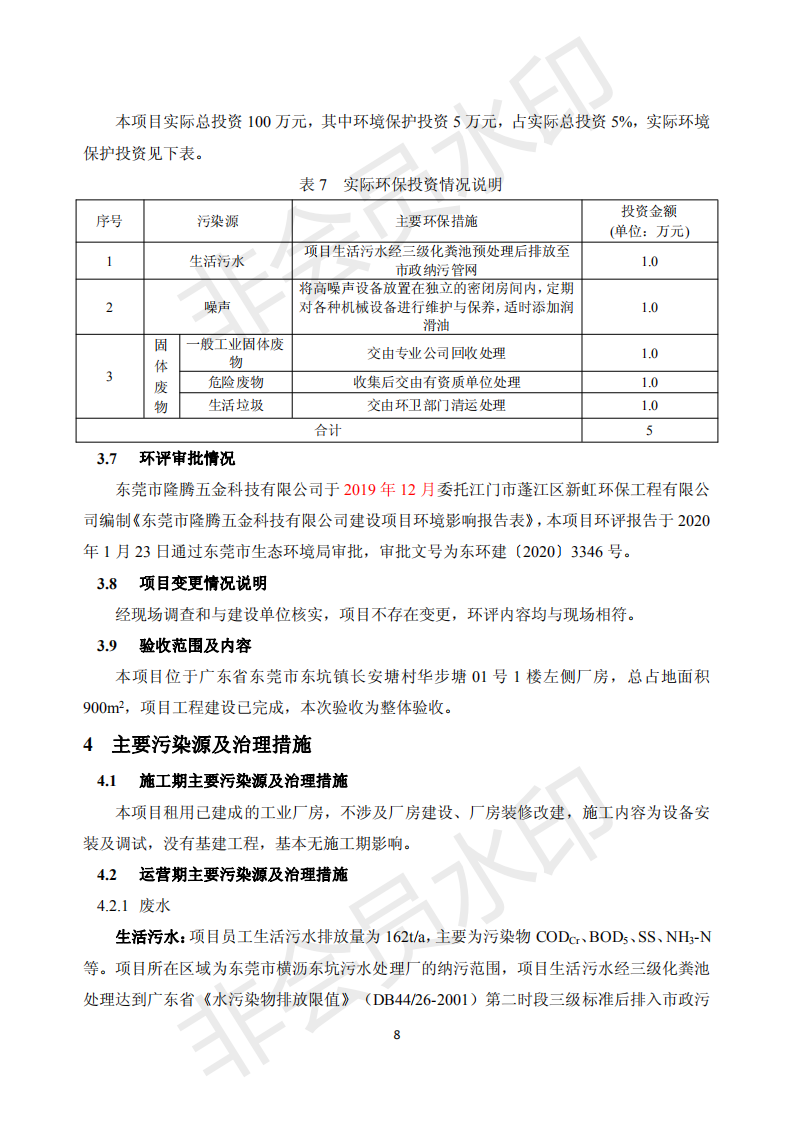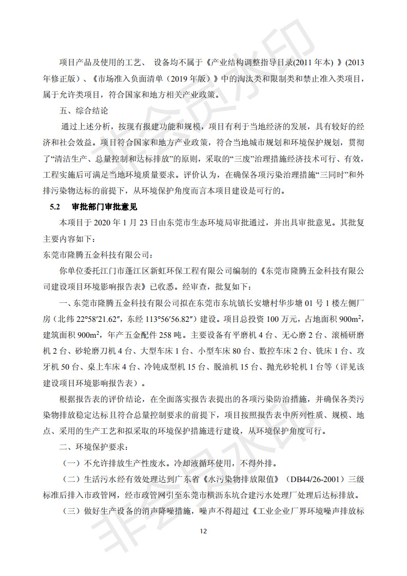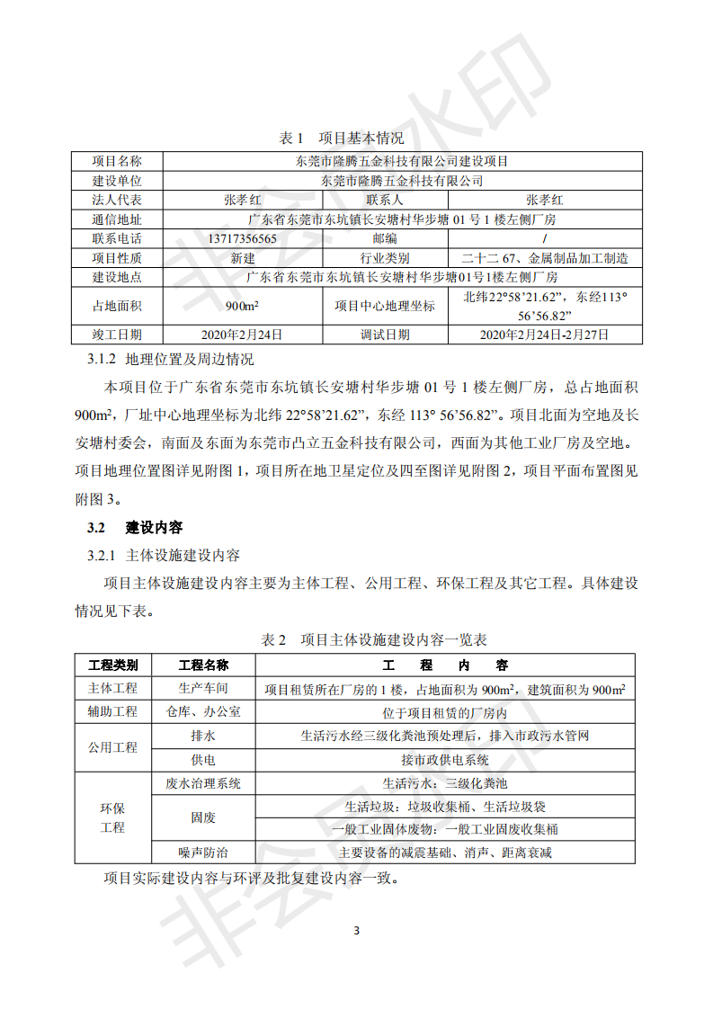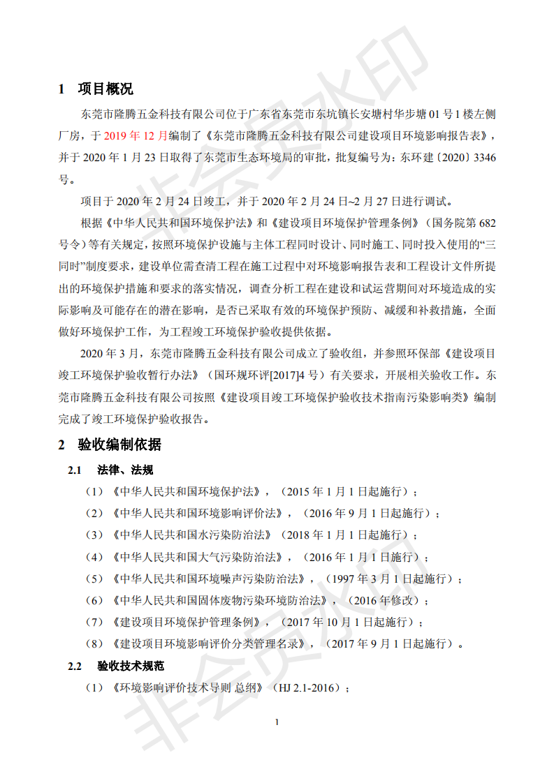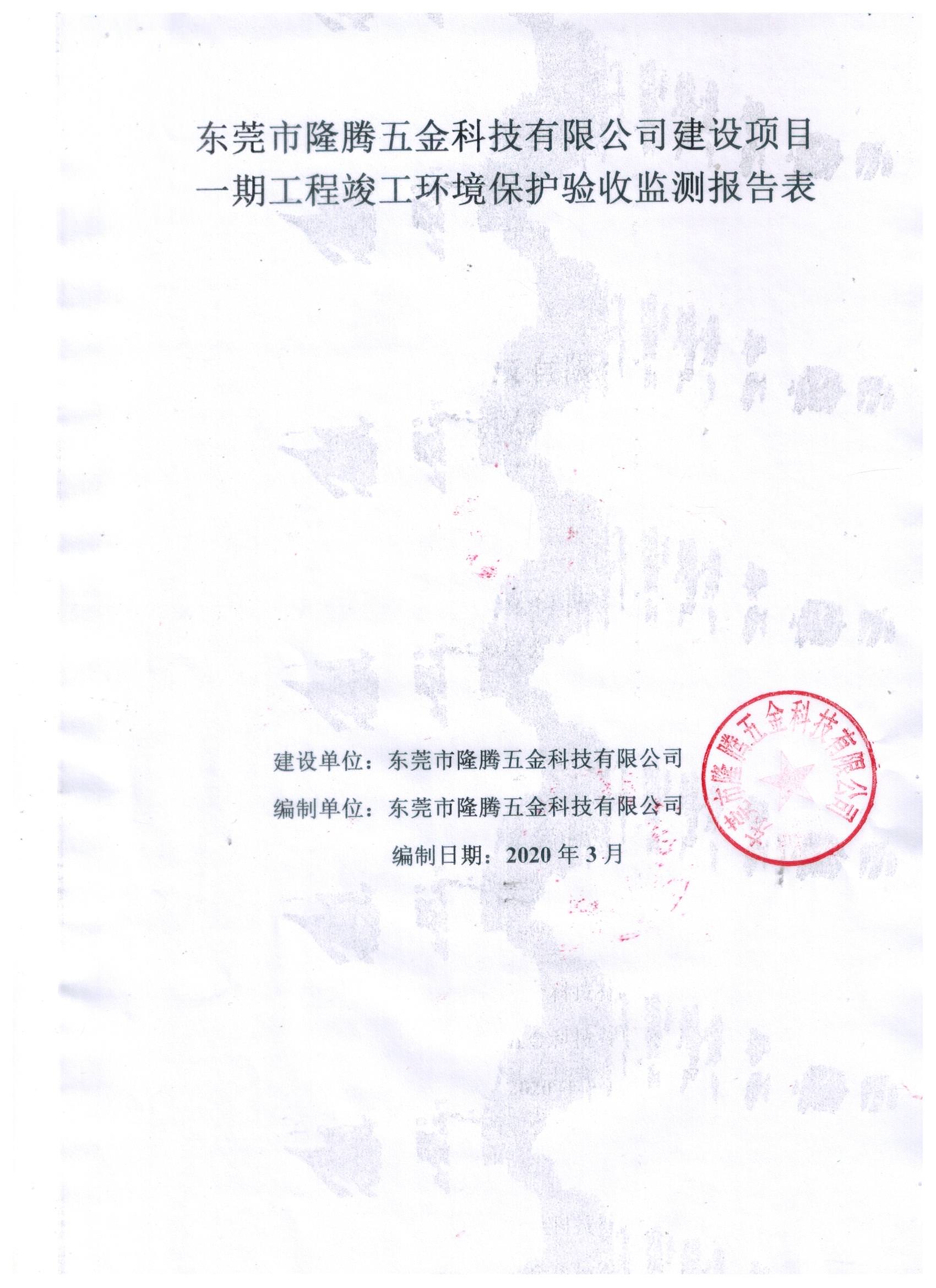 经验收现形成东莞市隆腾五金科技有限公司建设项目竣工环境保护验收报告”现公开征求意见20个工作日,如有意见请反馈。 联系人:李聪,联系电话:18814145807,公示日期:2020年7月20日