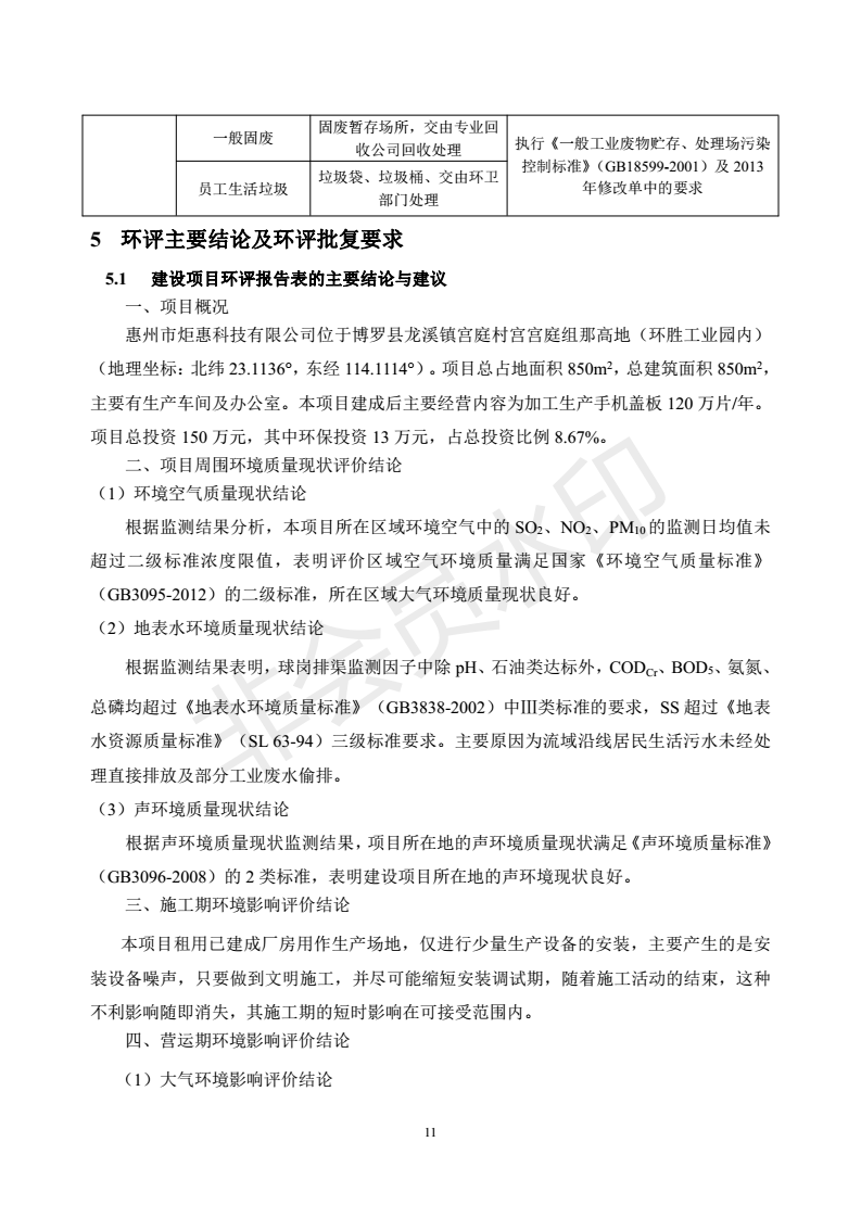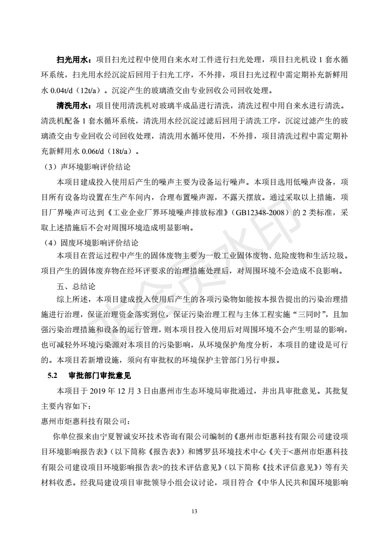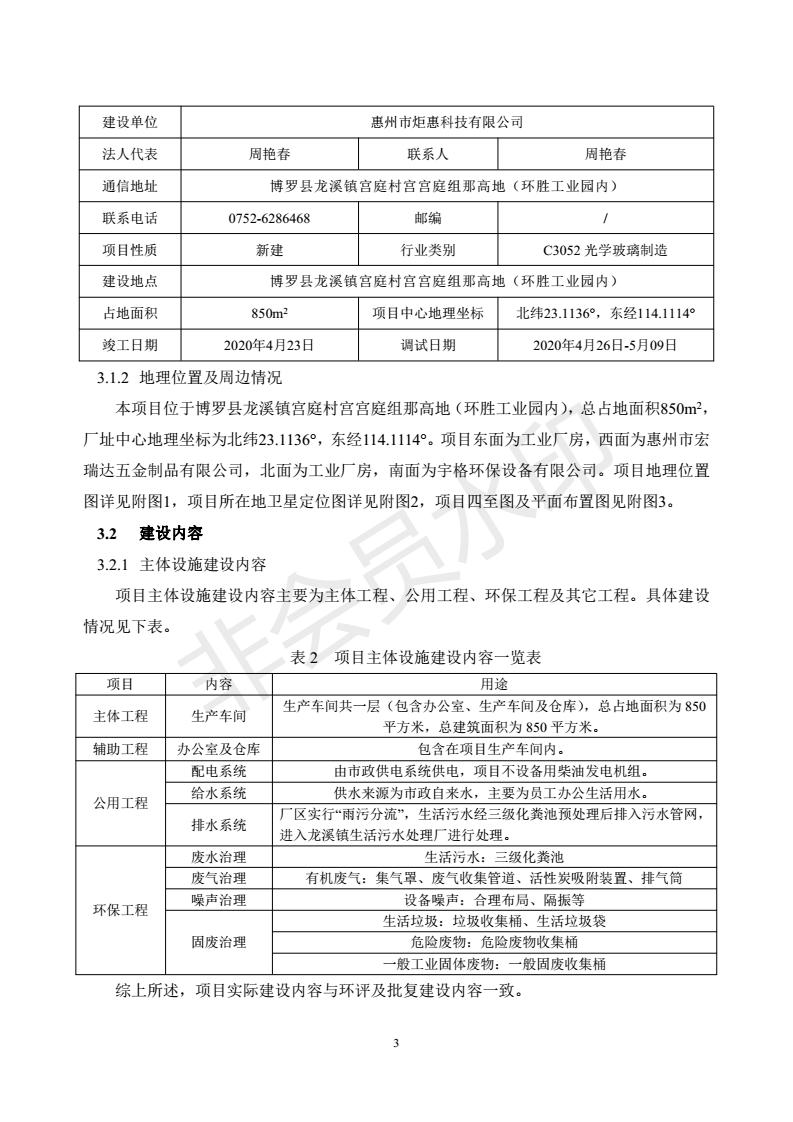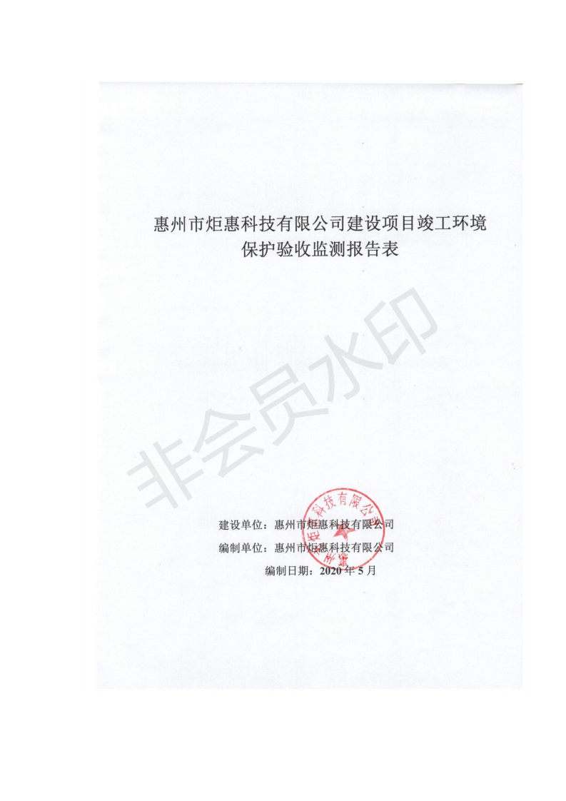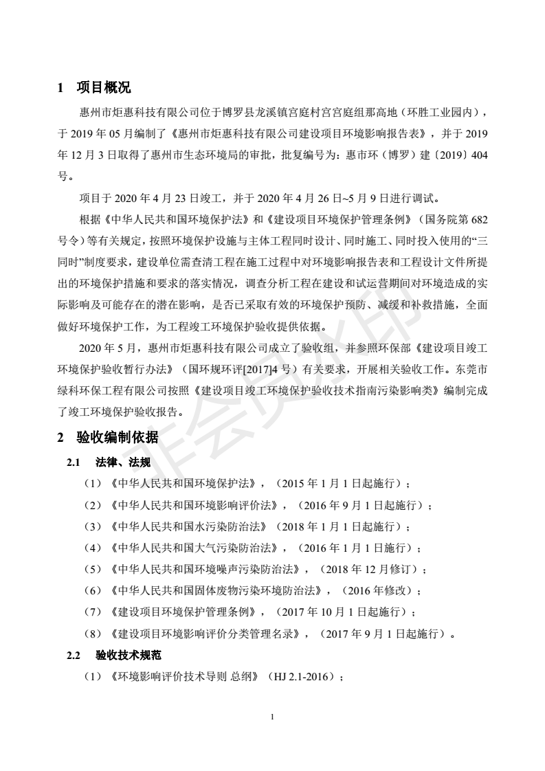经验收现形成惠州市炬惠科技有限公司建设项目竣工环境保护验收报告”现公开征求意见20个工作日,如有意见请反馈。 联系人:李聪,联系电话:18814145807,公示日期:2020年6月16日