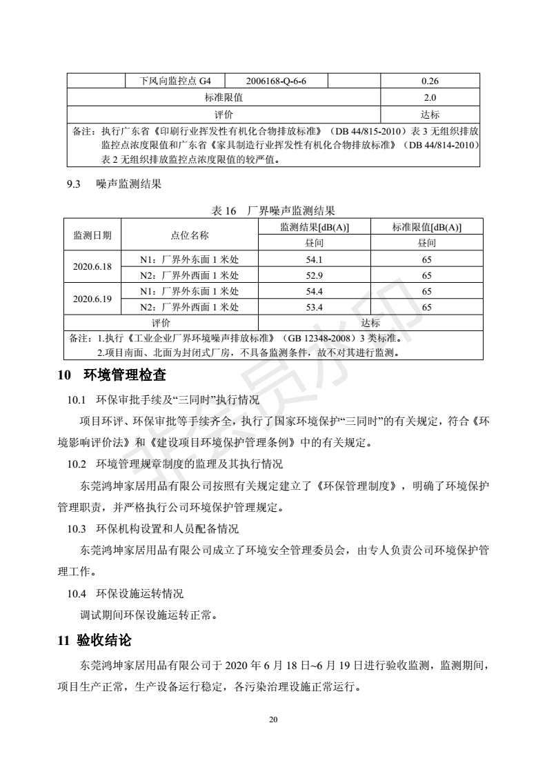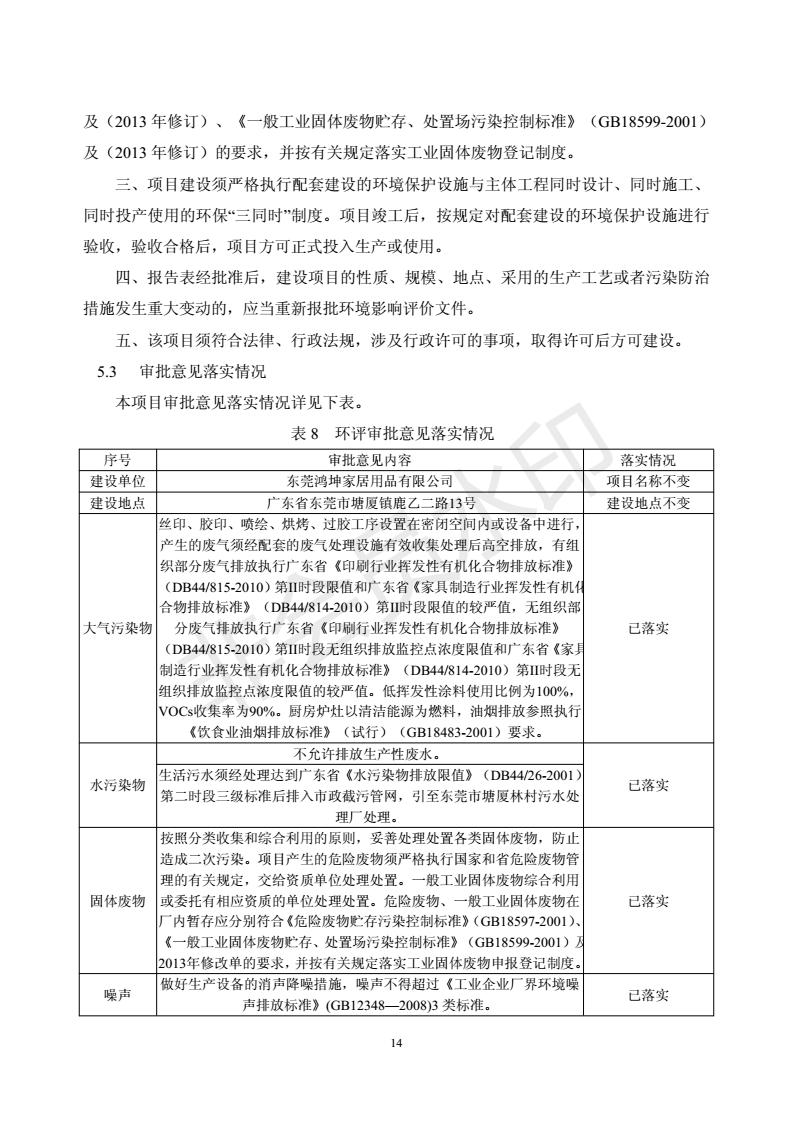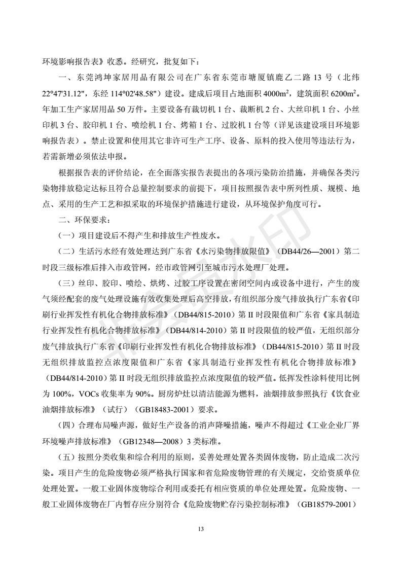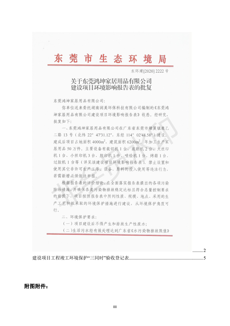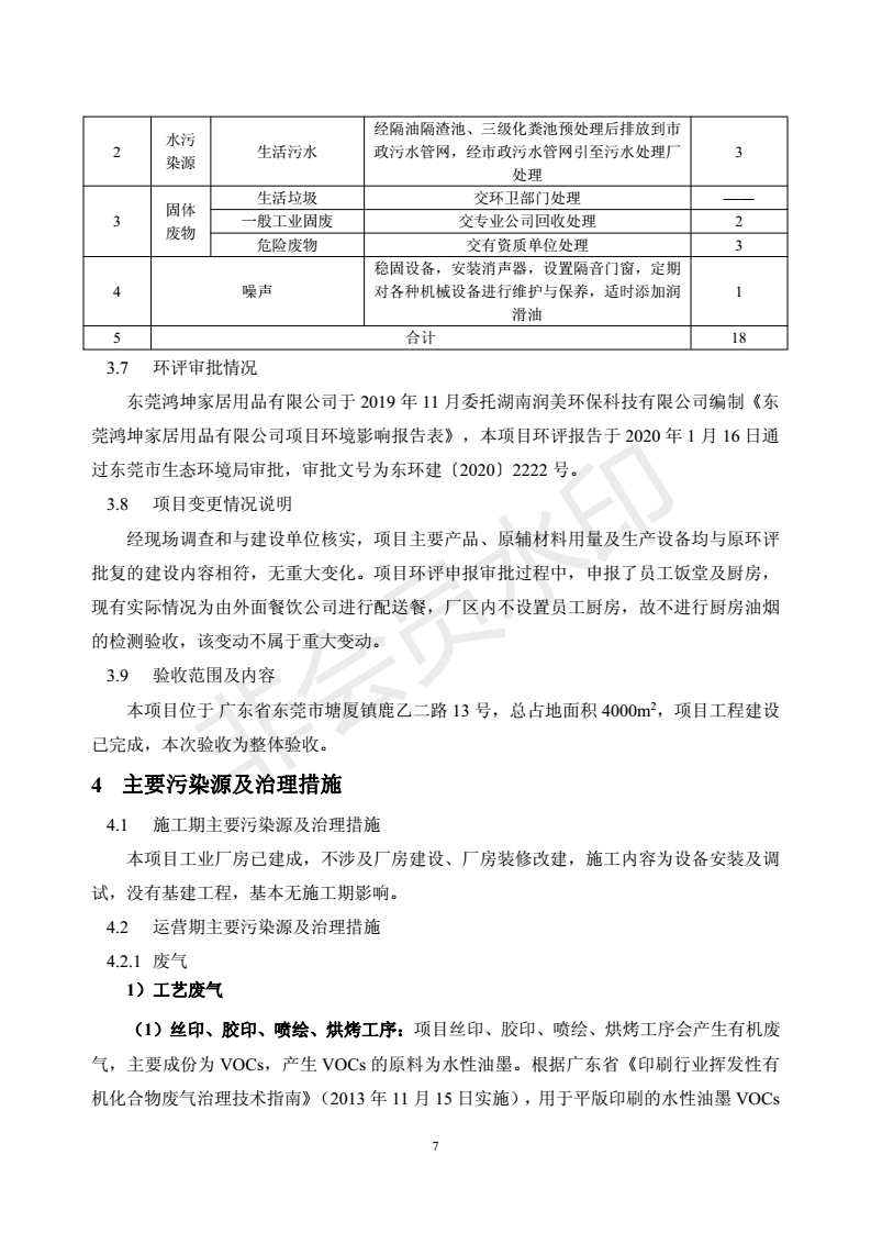 经验收现形成“东莞鸿坤家居用品有限公司建设项目竣工环境保护验收报告”现公开征求意见20个工作日,如有意见请反馈。 联系人:李聪,联系电话:18814145807,公示日期:2020年7月2日