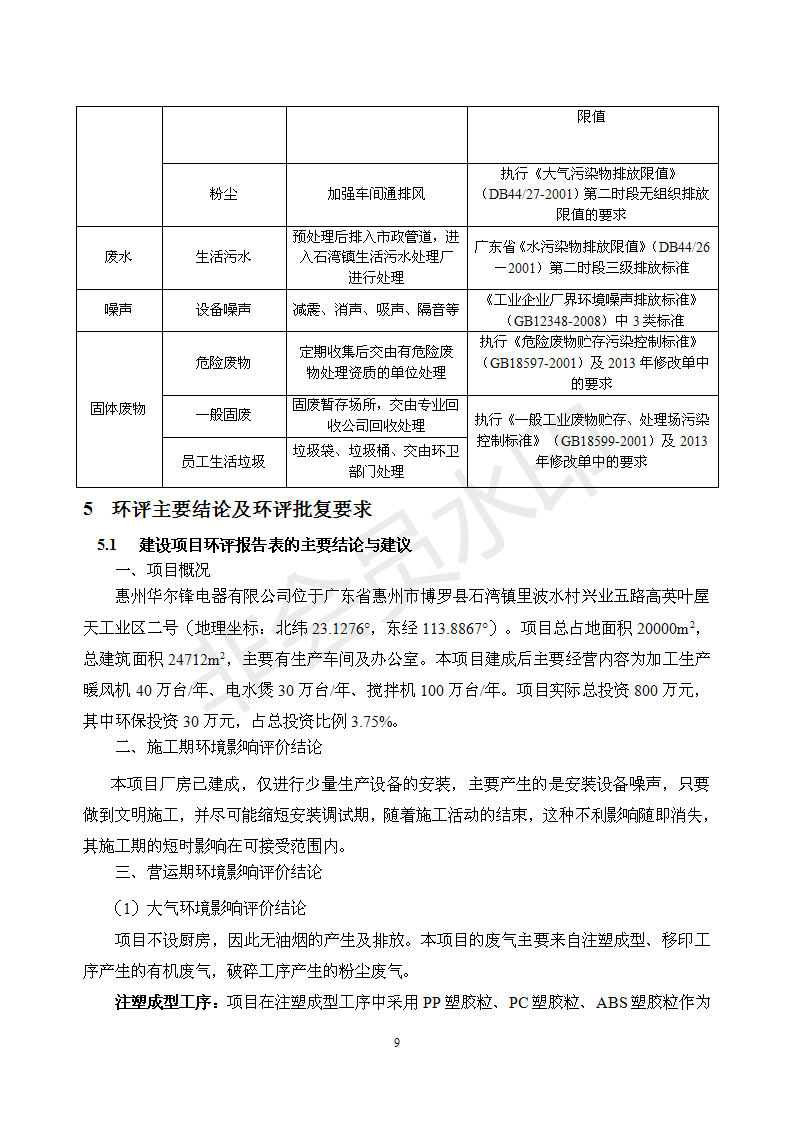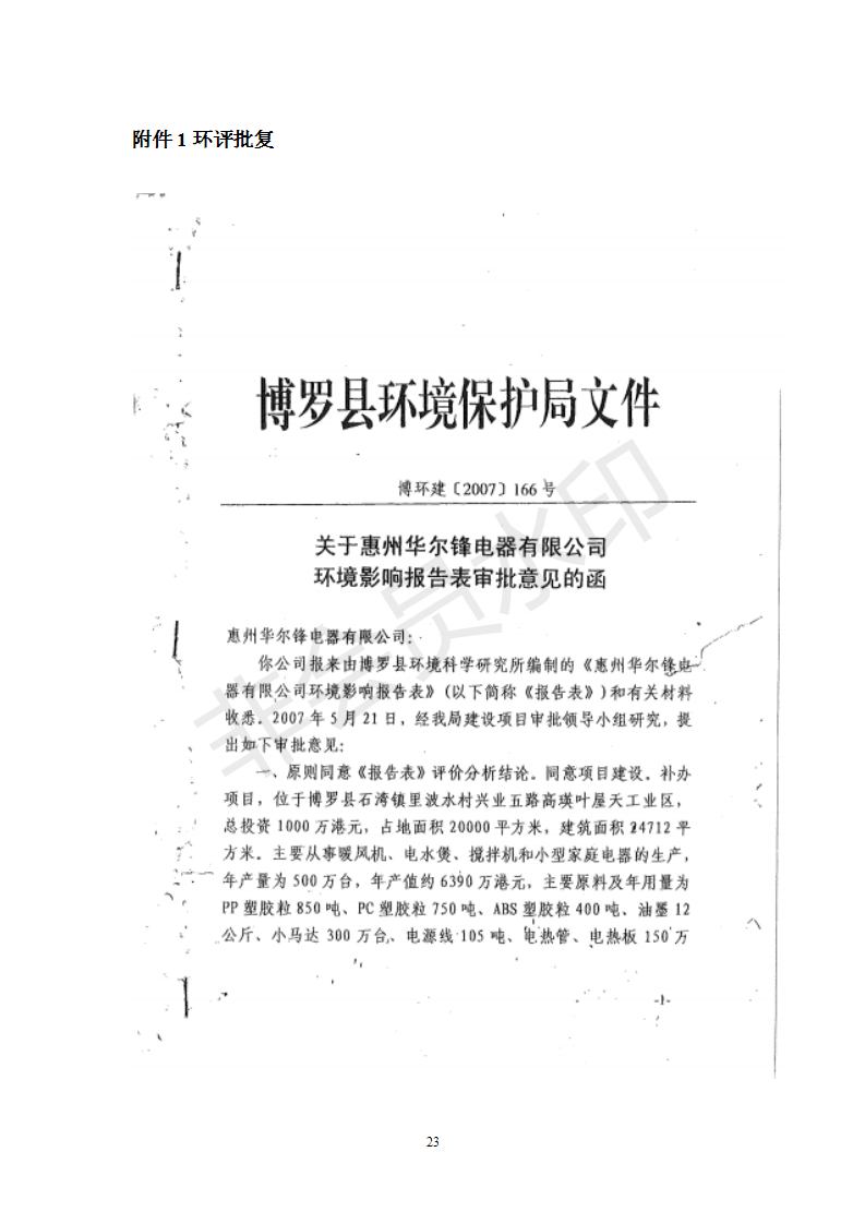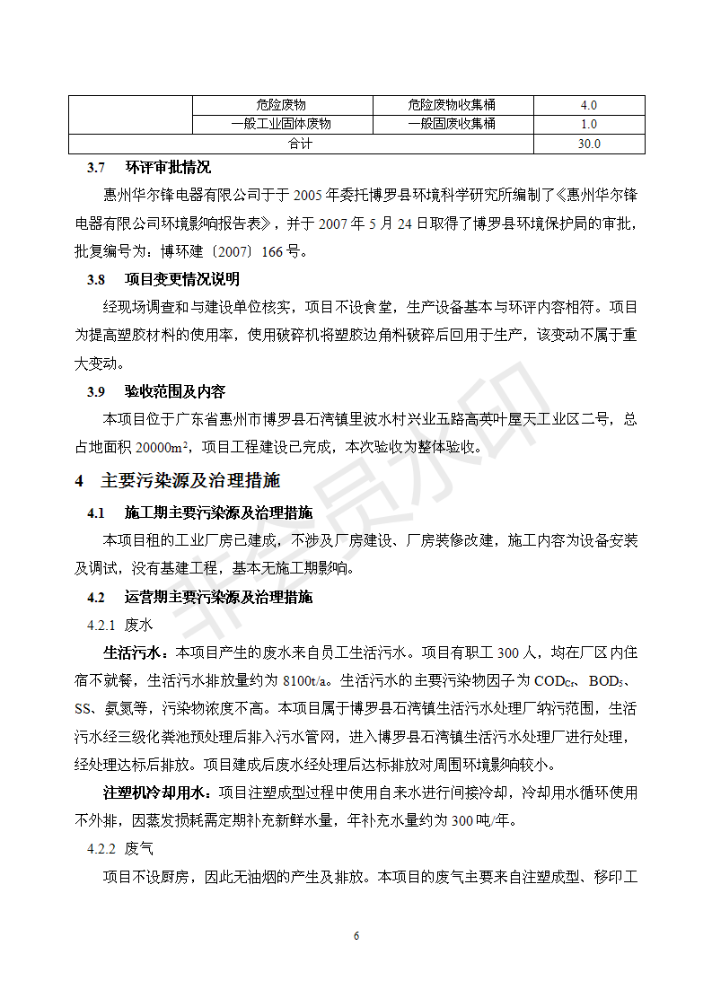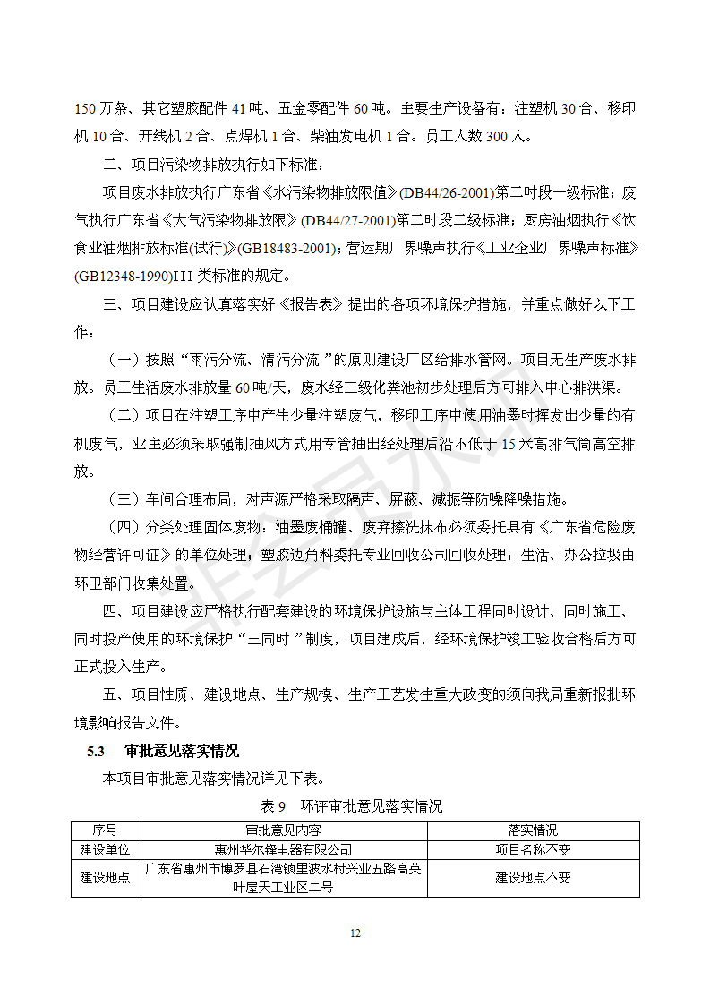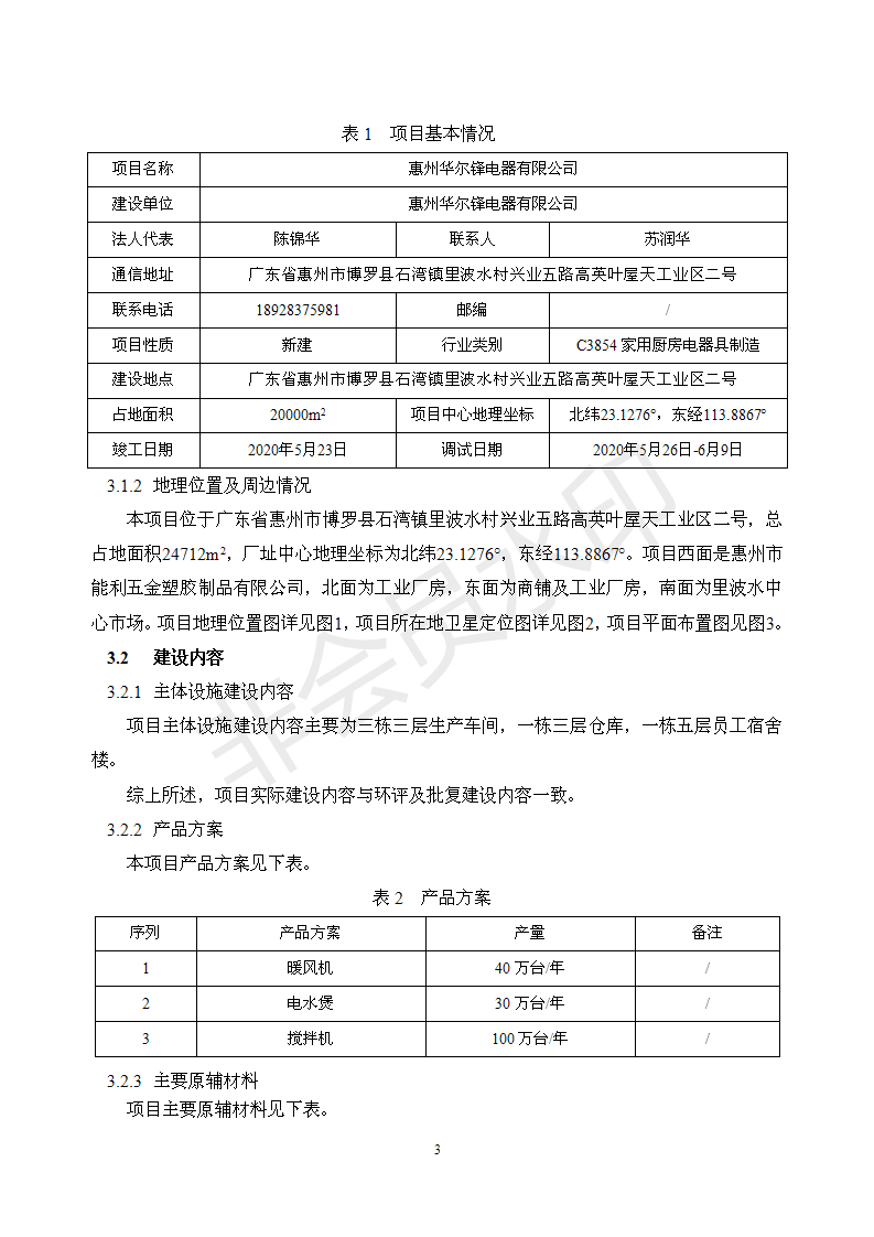经验收现形成“惠州华尔锋电器有限公司建设项目竣工环境保护验收报告”现公开征求意见20个工作日,如有意见请反馈。 联系人:李聪,联系电话:18814145807,公示日期:2020年7月15日